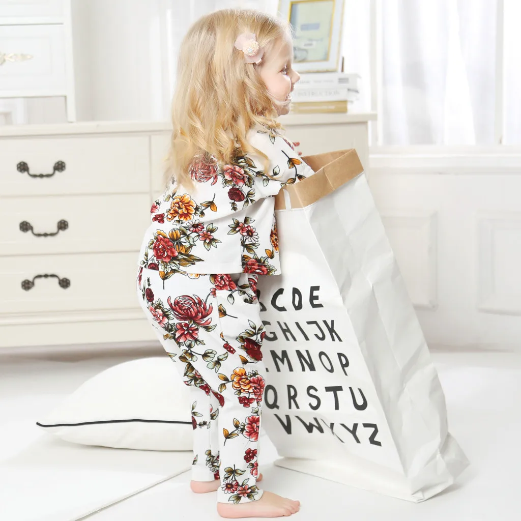 Топы с короткими рукавами и цветочным принтом для маленьких девочек + штаны, пижамы, одежда для сна