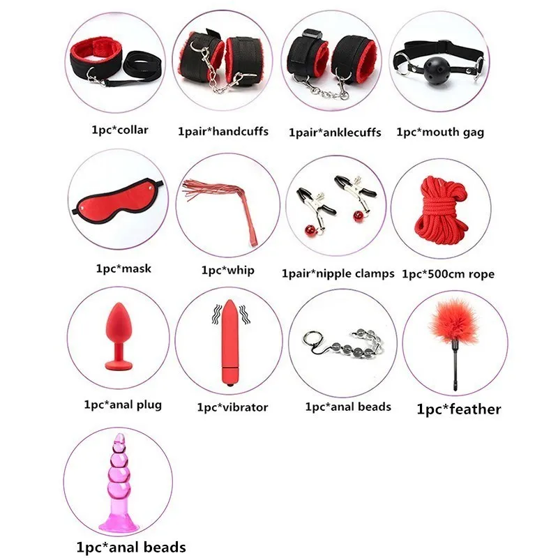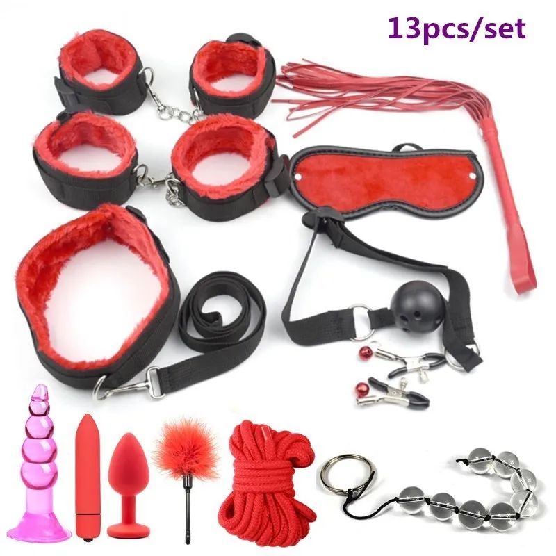 Секс наручники кнут рот кляп и веревка анальные шарики Анальная пробка Пуля Вибратор Секс игрушки для женщин БДСМ раб Секс Связывание набор