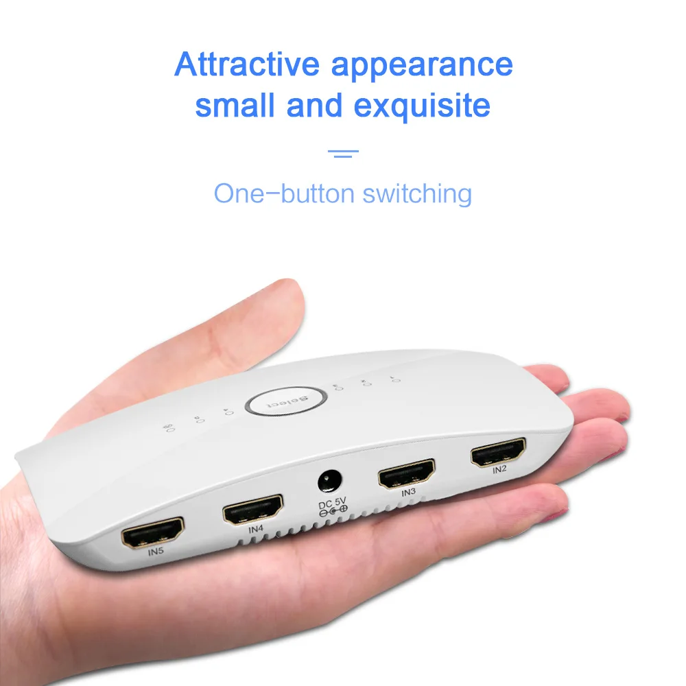 Описание Название: переключатель цвет: белый переменная смена: пять в одном, три в одном мощность: 5 В/1 А Особенности: 1. Пятиполосный вход сигнала HDMI переключается на один выход сигнала HDMI 2. Поддержка входного и выходного сигнала 4K @ 60Hz full HD 3. Поддержка инфракрасного дистанционного управления и функции автоматического переключения входного сигнала HDMI. 4. Поддержка входного порта автоматически переключается между функциями включения и выключения. 5. Скрытые Световые индикаторы привносят новый опыт. 6. Новый минималистский дизайн, продукт красивый и простой в использовании. 7. При использовании входного и выходного разрешения 4K @ 60 Гц Используйте стандартный кабель AWG26 HDMI, Расстояние входной передачи составляет до 5 метров, а расстояние выходной передачи-до 5 метров. При вводе и выводе с разрешением ниже 4K @ 60Hz Используйте стандартный кабель AWG26 HDMI. Входное расстояние передачи может достигать 8 метров, а выходное расстояние передачи может достигать 8 метров. Характеристики продукта: Разрешение HDMI: .24/50/60fs/2160P/1080P/1080i/720p/576p/576i/480P/480i формат цвета видео: 24/30/36 бит/1080P/1080i/720p/576p/576i/480P/480i, 24 бит/2160P HDMI вход и выход Поддержка аудио формата: DTS-HD/Dolby-trueHD/LPCM7.1/DTS/Dolby-AC3 Максимальная пропускная способность передачи: 600 МГц вход и выход DDC сигнал: 5Vp-p (TTL расстояние дистанционного управления: ≥ 4 м длина входного кабеля: ≤ 5 м AWG26 HDMI Стандартный Выходной кабель Длина кабеля: ≤ 5 м AWG26 HDMI Стандартный кабель Максимальный рабочий ток: 450мА Рабочая температура: (от-0 до + 40 °C) Диапазон рабочей влажности: от 5 до 85% RH (без конденсации) Температура хранения:-От-15 до 55 ° C Влажность хранения: 5 ~ 95% RH (без конденсации) Размер продукта: 138,7x71,6x26,5 (мм) Размер упаковки: 16*9,5*4,5 (см) Вес нетто: 121 г Вес брутто: 278 г список: переключатель * 1, пульт дистанционного управления * 1, шнур питания * 1, руководство * 1