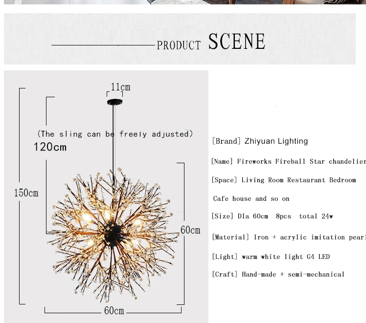 Описание продукта: Напряжение: 110-240 В Мощность: 3 Вт на лампу Размер: диаметр 60 см, диаметр 80 см, диаметр 120 см Материал: акрил, нержавеющая сталь Длина кабеля: мы можем изготовить на заказ любую длину для вас, если вам нужно, пожалуйста, свяжитесь с нашей службой поддержки клиентов. Длина кабеля регулируется