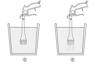 Очистите оборудование, вы только Положите колокол в воду и удерживайте триггер около 1-3 секунд.
