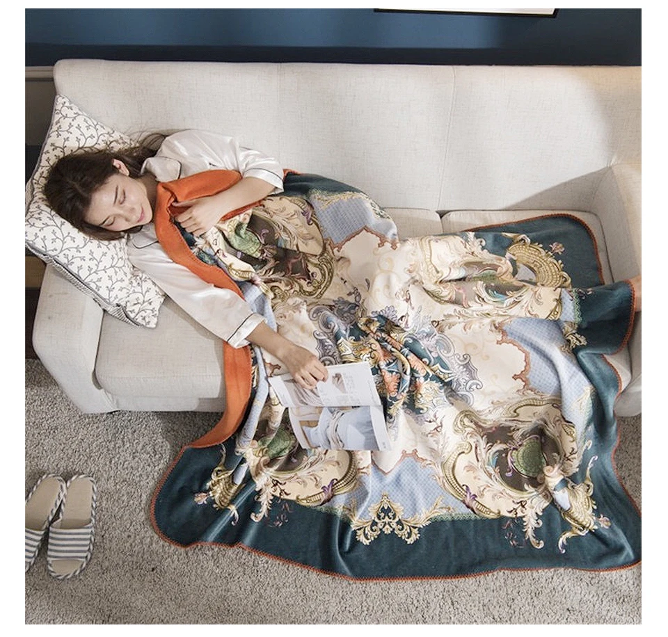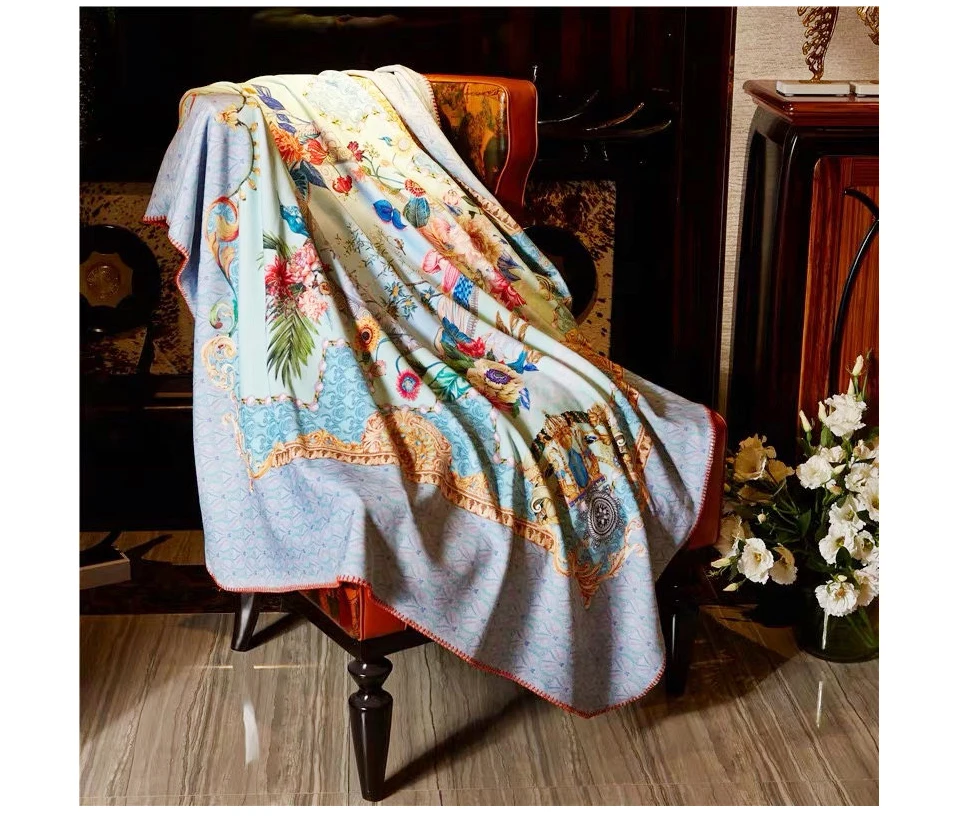 Высококачественный 2019 новый европейский итальянский классический стиль Королевский дворец Дизайн бренд золотой черный синий розовый вельвет ткань четыре сезона одеяло