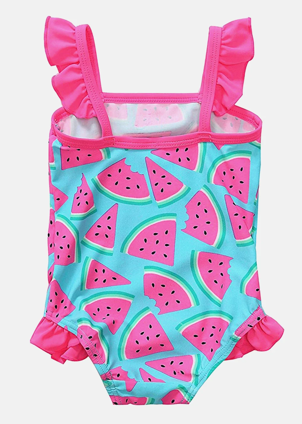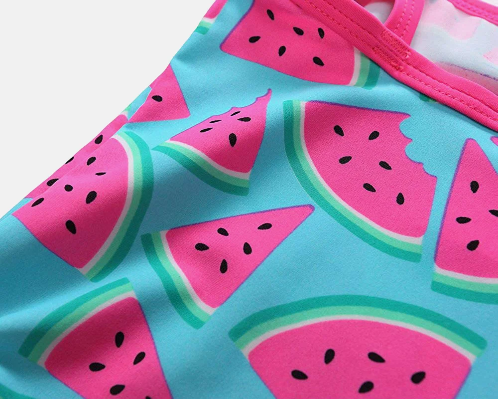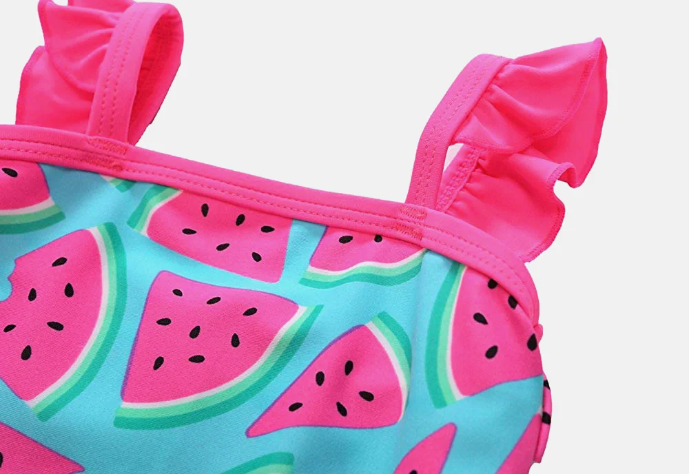 Attraco/Цельные купальные костюмы для маленьких девочек с принтом арбуза и фруктов; Купальный костюм с рюшами; Детское милое бикини; Пляжная одежда; Детский цельный купальник