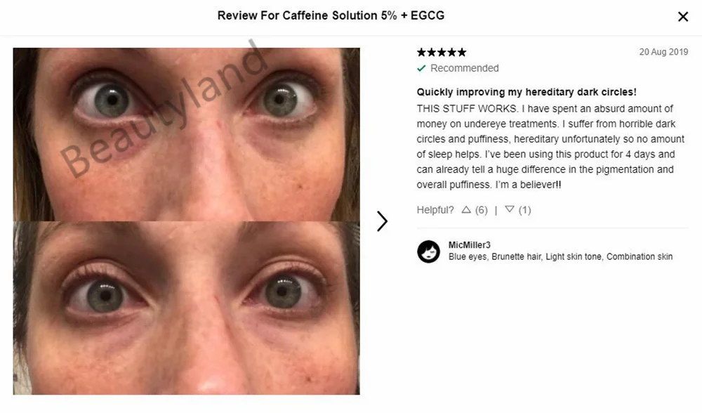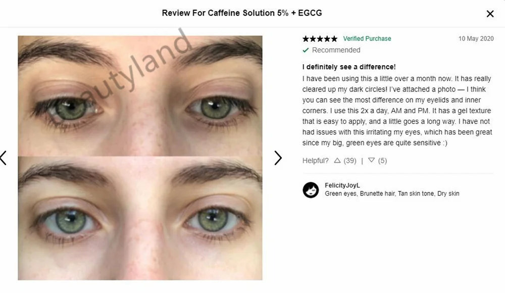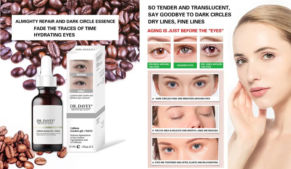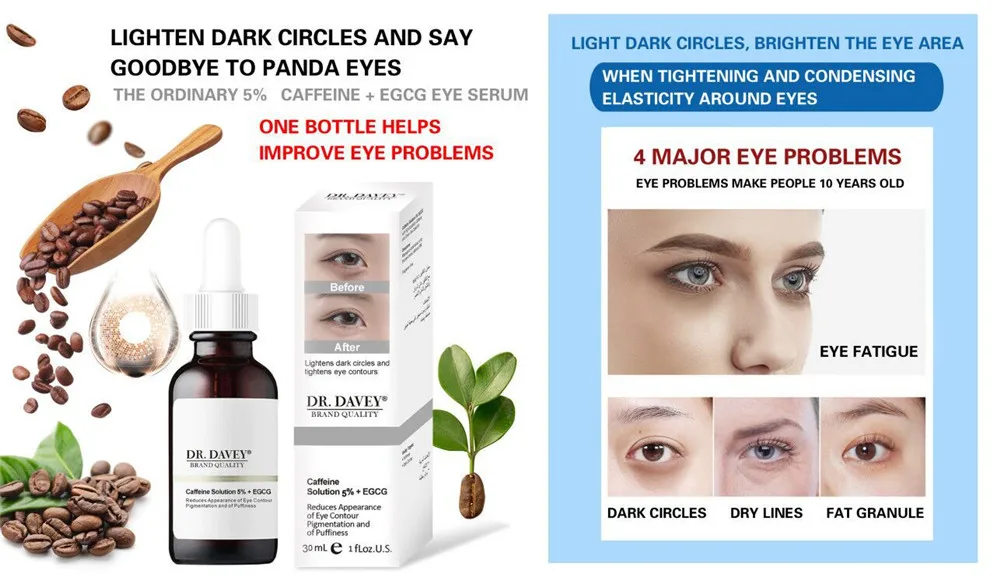 Концентрированная сыворотка с высокой растворимостью кофеина и зеленого чая cathechin для заметного уменьшения контурной пигментации и отечности глаз.
