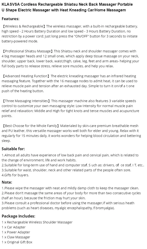U образный Электрический роликовый массажер для шеи спины плеч тела уход за
