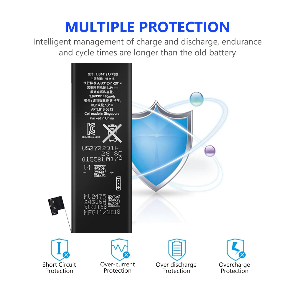 Встроенный высокопроизводительный интегрированный микрочип, наши батареи имеют множество защиты от перенапряжения, перегрузки по току, разрядки, перезарядки, перезаряда, перегрева, перегрева, короткого замыкания, обратный вход и электрический сердечник PTC.