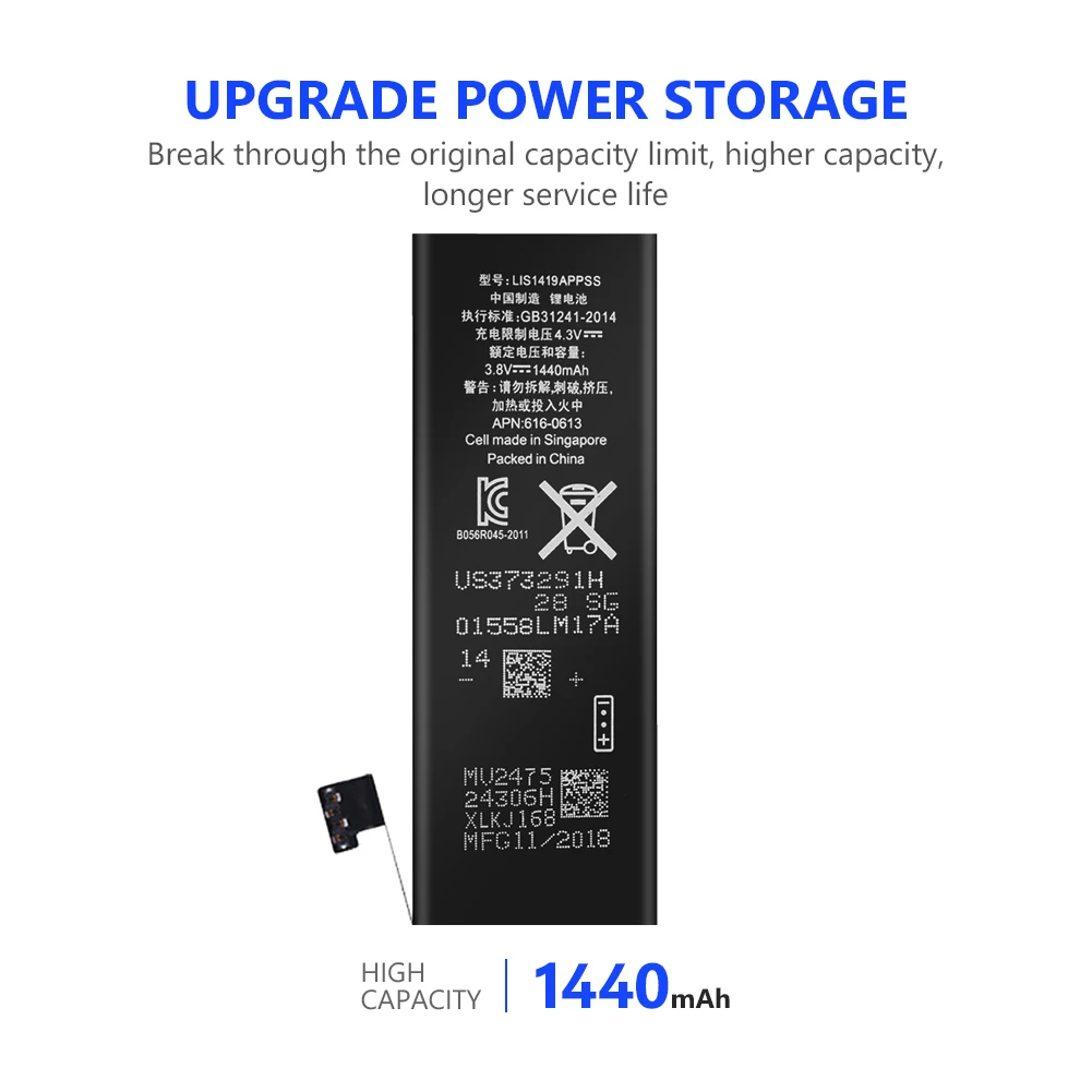 С большой емкостью 1440 мА · ч, меньше беспокойтесь о том, что ваш сотовый телефон будет мертвым в течение короткого времени.