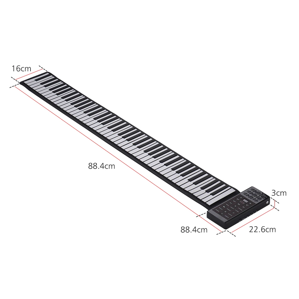Использование силикона для защиты окружающей среды, нетоксичный и безвредный, мягкий и водонепроницаемый; Гибкий дизайн и портативный размер позволяют легко играть на пианино в любое время и в любом месте.