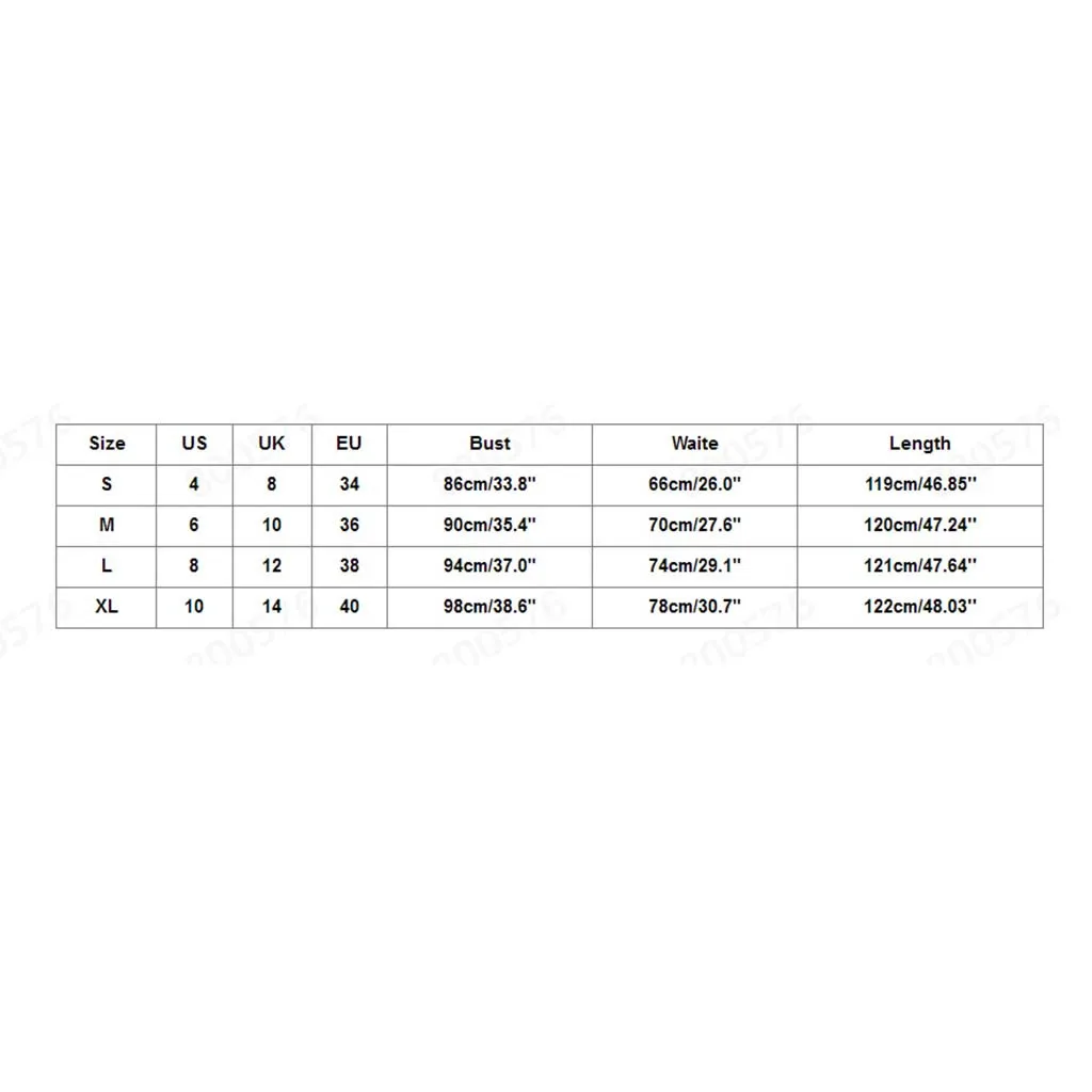 | Размеры: S | Свяжитесь с нами: 4 | UK:8 | ЕС: 34 | Бюст: 86 см/33,8" | Waite:66 см/26,0" | Длина: 119 см/46,85 дюйма |