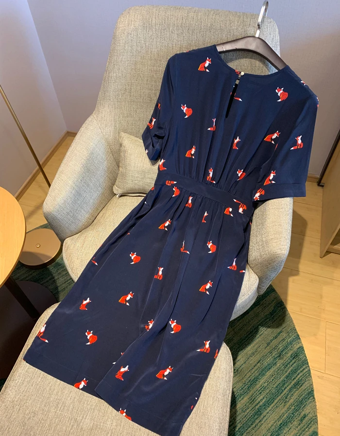 С принтом в виде лисы, платье для девочек Приталенный крой дизайн Материал: ИМИТИРОВАННАЯ шелковая ткань