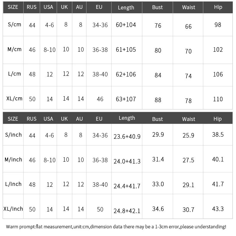 Размер: S, M, L, XL (разница в измерениях от 2 до 3 см, пожалуйста, убедитесь, что измерения Вашего тела действительно соответствуют этому набору. Все измерения указаны в см и обратите внимание, что 1 см = 0,39 дюйма).