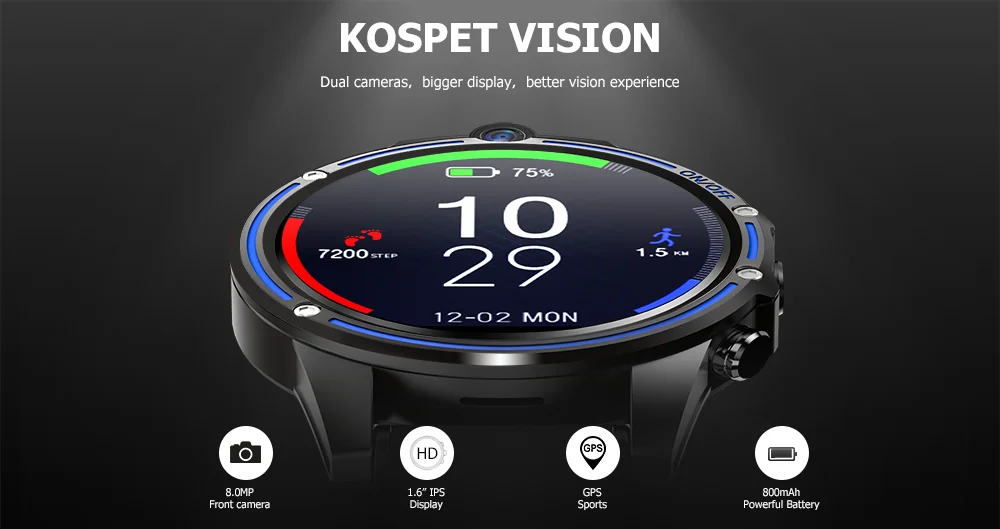 Смарт-часы kospet Vision 5.0MP + 5.0Mp с двойной камерой, Android 800 мАч, батарея, gps карты, умные часы для мужчин, для IOS, Android, HUAWEI, часы GT