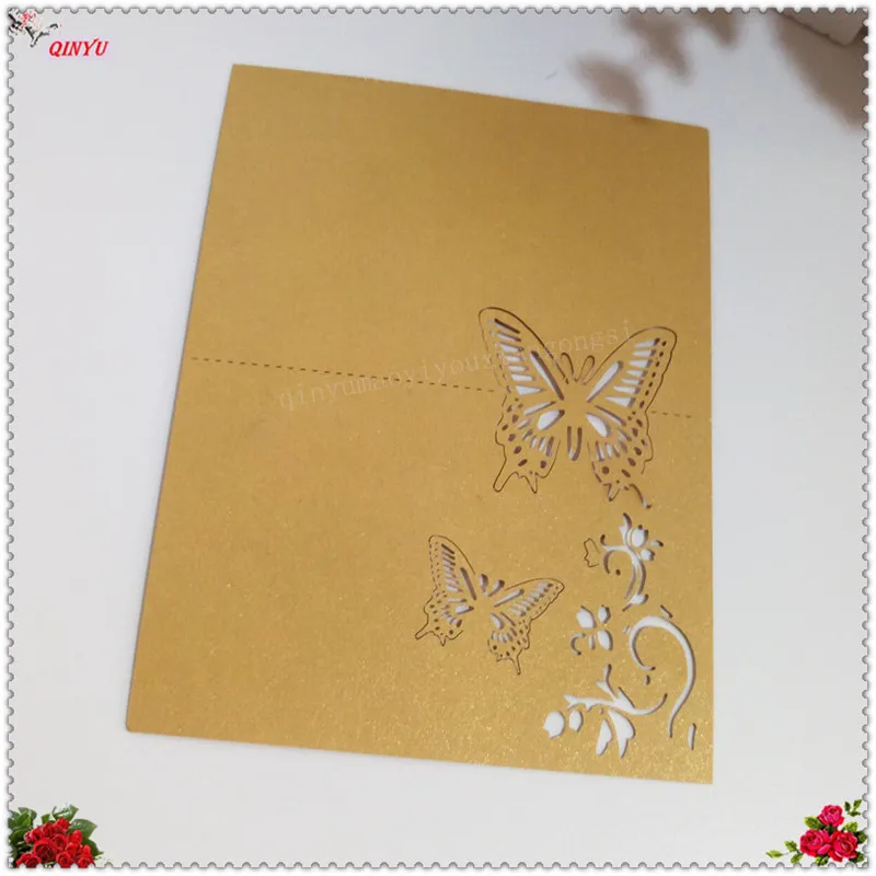 Свадебные пригласительные 50 шт., свадебные открытки с лазерной гравировкой, для вечеринки, для украшения места, открытки с выемкой в виде бабочки, имя стола, свадебное украшение, вечеринка 129 см, 5zsh075