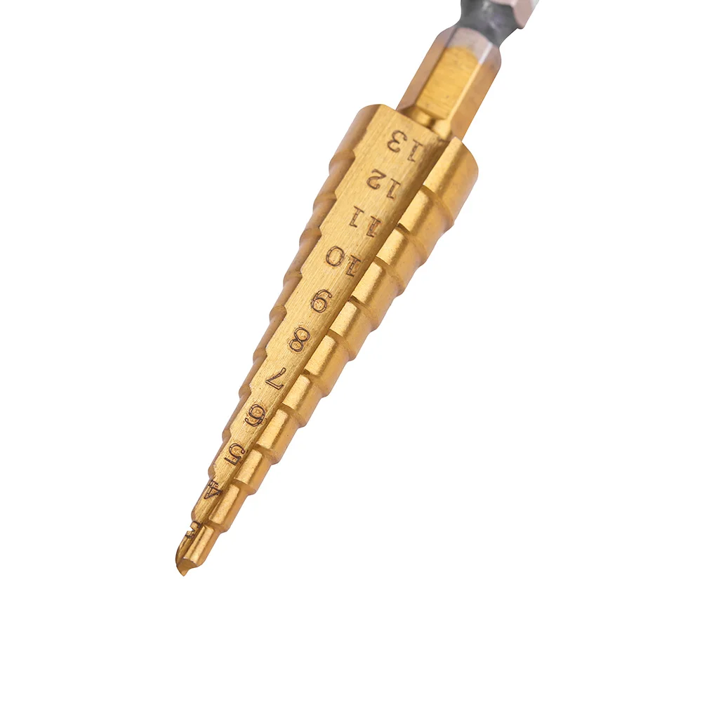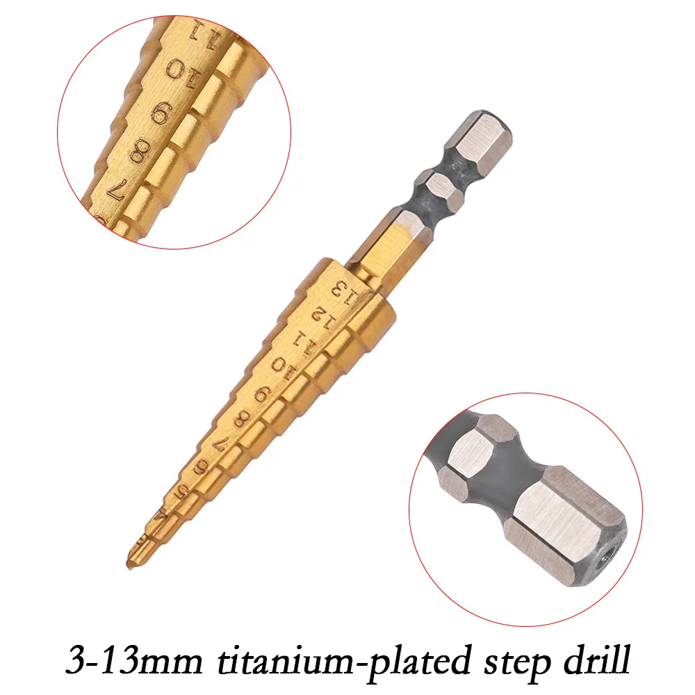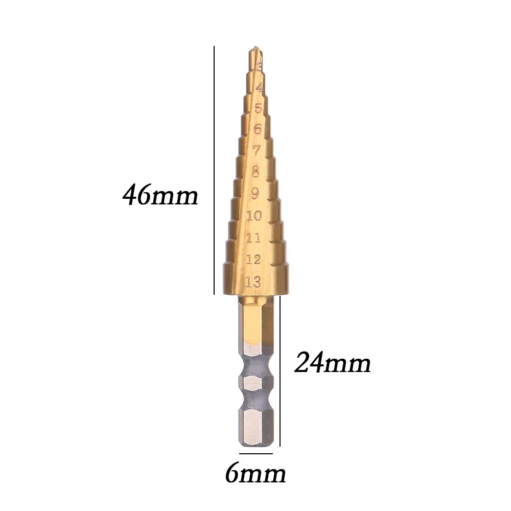 Материал: Высокоскоростная сталь (используется для твердости материала, который ниже 25 °, как Железный бор, стальная доска, ПВХ доска, изоляционная доска и т. Д.) Поверхность: титановое покрытие Тип: Прямая флейта Ручка: шестигранный хвостовик Размер: 3-13 мм 3,4,5,6,7,8,9,10,11,12,13 мм 11 шагов Вес единицы: 28 г Посылка: 1 шт. ступенчатая дрель