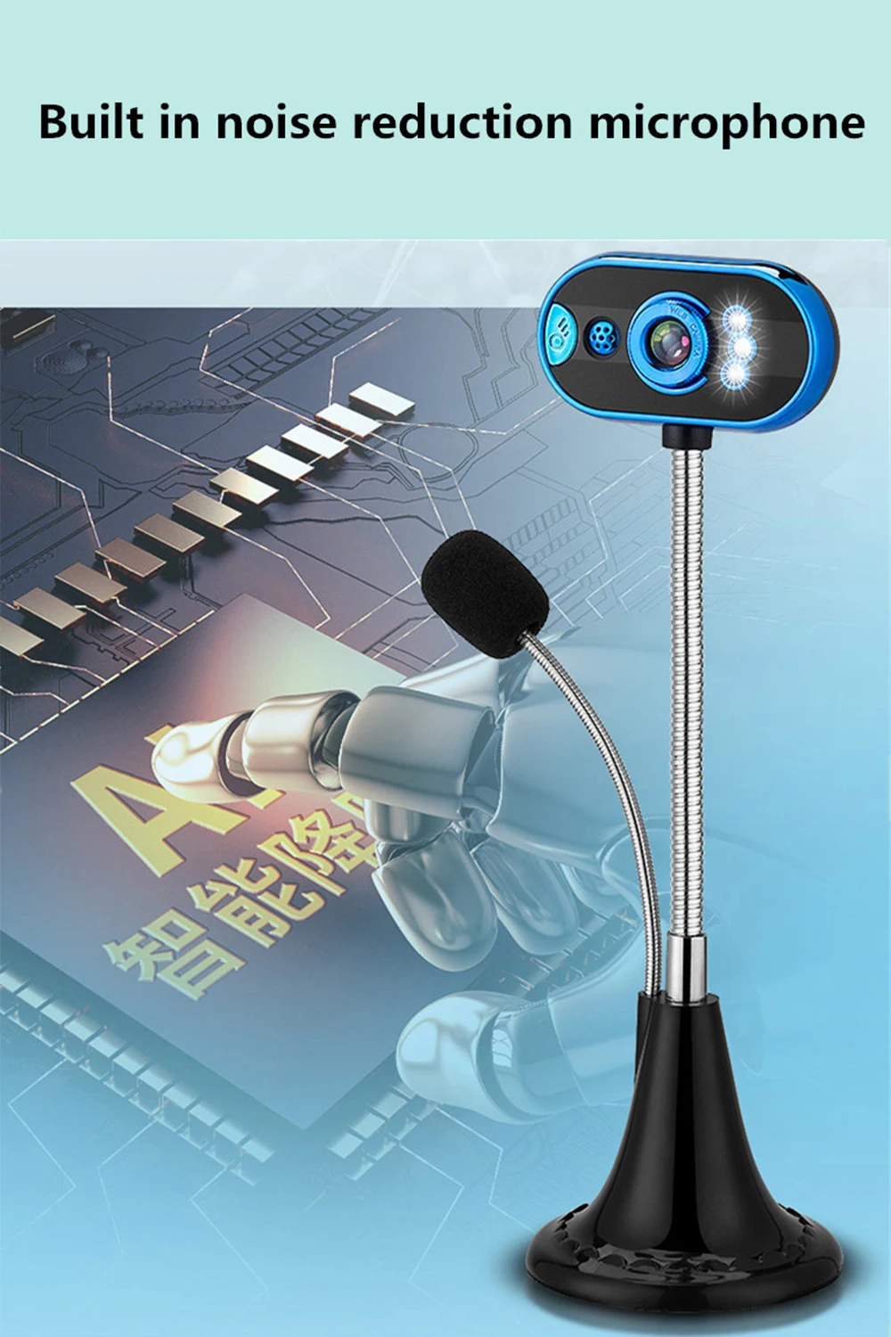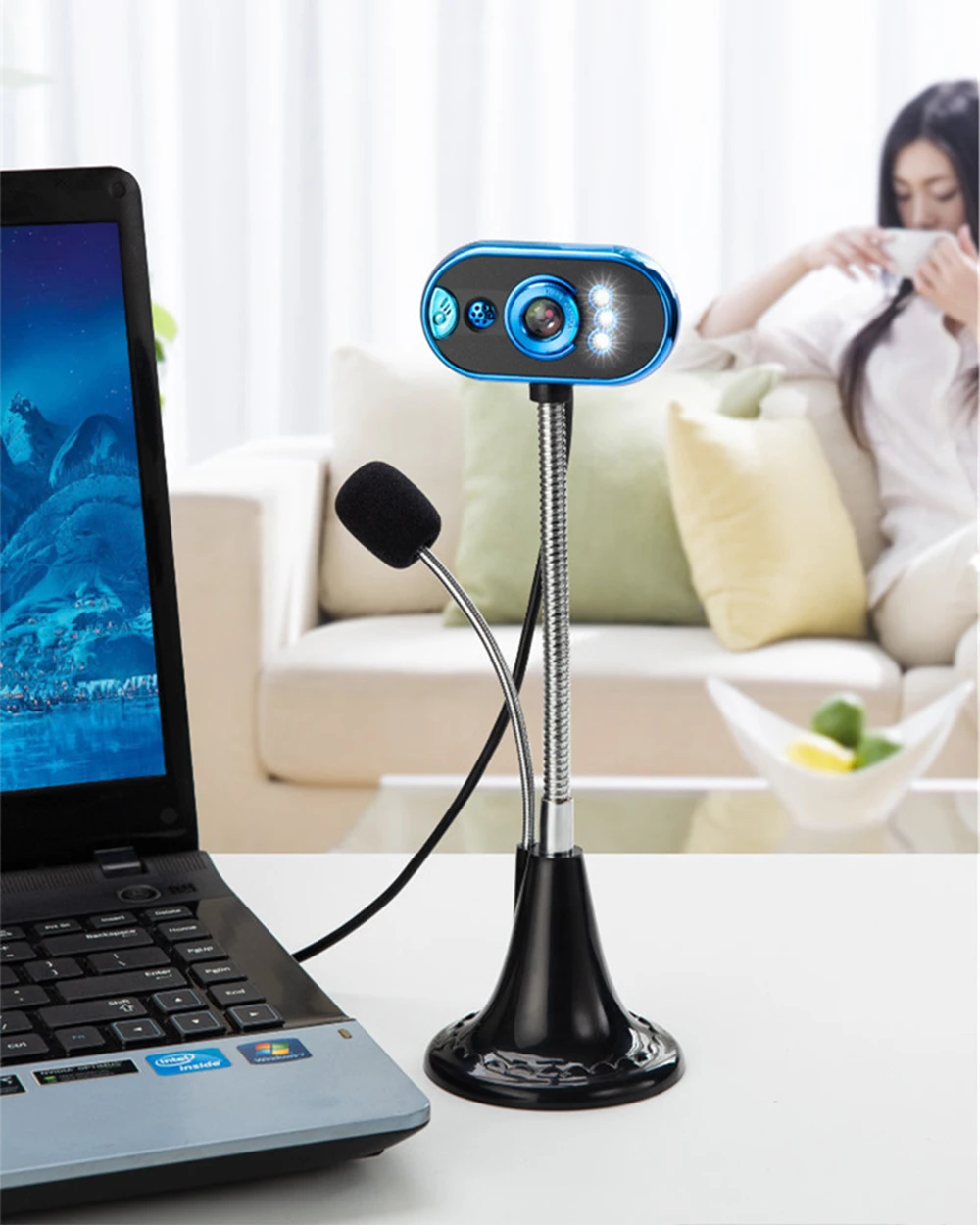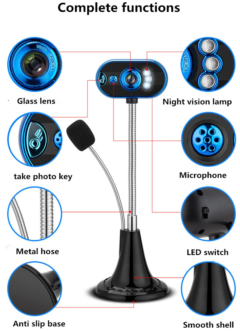 Веб-камера T18 HD обеспечивает высокое качество изображения и четкий звук. Особенности: Встроенный микрофон, ваш голос может быть четко слышен в пределах 10 метров. Гибкое вращение, вы можете регулировать угол по мере необходимости. 4 светодиодный лампы используются ночью, чтобы дать вам яркий визуальный эффект За камерой есть светильник с переключателем управления. Автоматический баланс белого, Автоматическая коррекция цвета. Вручную фокусировка. Хорошее качество, красивый внешний вид. Интерфейс USB: подключи и работай По умолчанию динамический пиксель изображения: 640*480 Программное обеспечение может достигать динамического пикселя: 1600*1200 Usb-кабеля составляет около 1,4 м Применимый Интерфейс: USB 3,0, USB 2,0 Частота отображения кадра: 30 кадров/секунды Требования к освещению: более 10Lus. sec Формат статического хранения изображений: BMP / JPEG