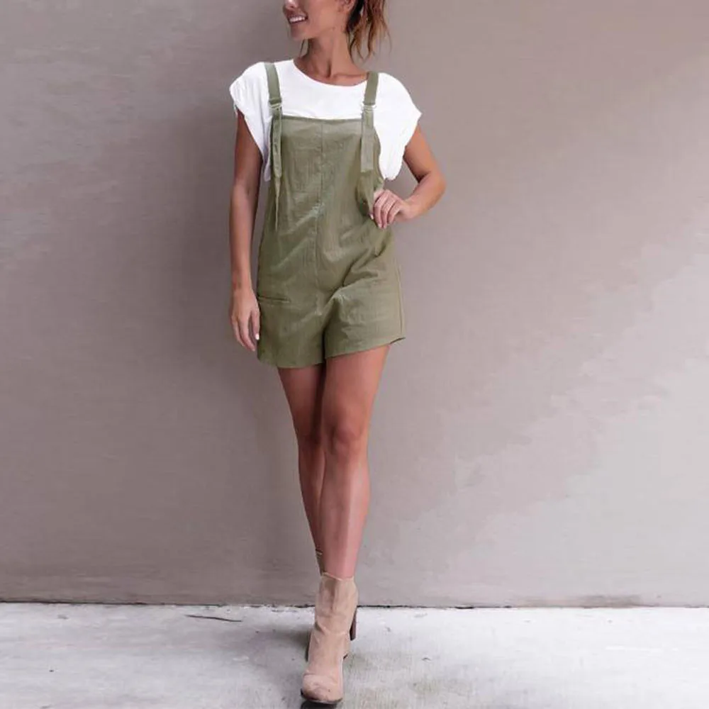 Женские льняные комбинезоны с карманами и эластичной резинкой на талии