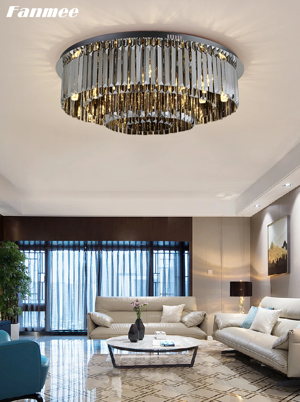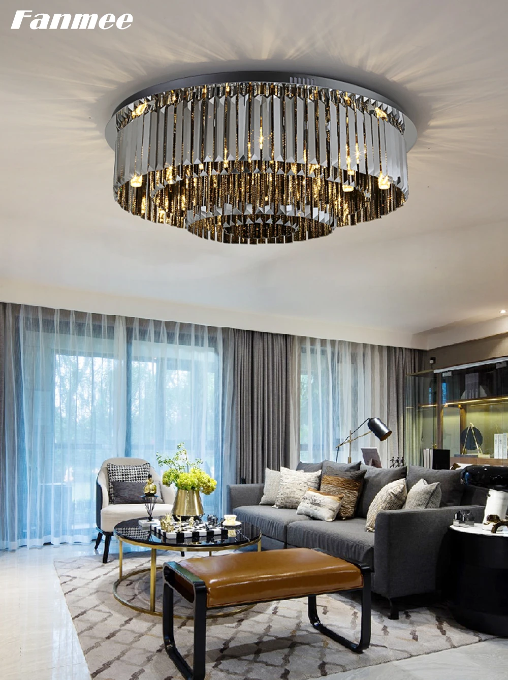 Роскошная круглая потолочная лампа, светодиодный потолочный светильник с дымчатым кристаллом, люстра для дома, декор для гостиной, светильник для спальни