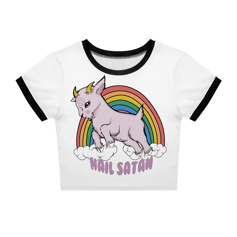 Модный укороченный топ с 3d принтом, короткая футболка с коротким рукавом, женская уличная Футболка Harajuku, топы, летние футболки с круглым вырезом для девочек, 2020