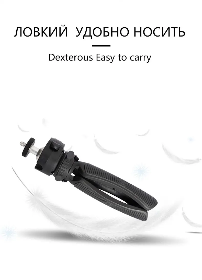 Резиновые ножки гарантируют устойчивость любой поверхности без скольжения. Совместимость с цифровой камерой со стандартной резьбой 1/4 и отличной стабильностью, ее можно использовать на различных цифровых устройствах: iPhone (требуется дополнительный держатель телефона), микро Одиночная камера, DV камера.