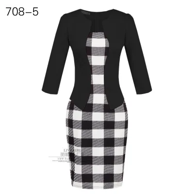 Женское поддельное платье из 2 частей офисное женское платье Весна Осень миди платье карандаш с поясом