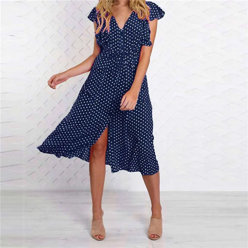 Летнее платье для женщин с принтом в горошек, платье макси без рукавов, повседневное Летнее Длинное Платье До Колена, сексуальное пляжное платье Vestidos