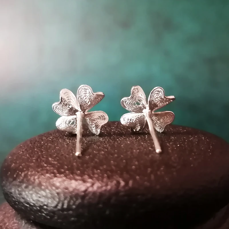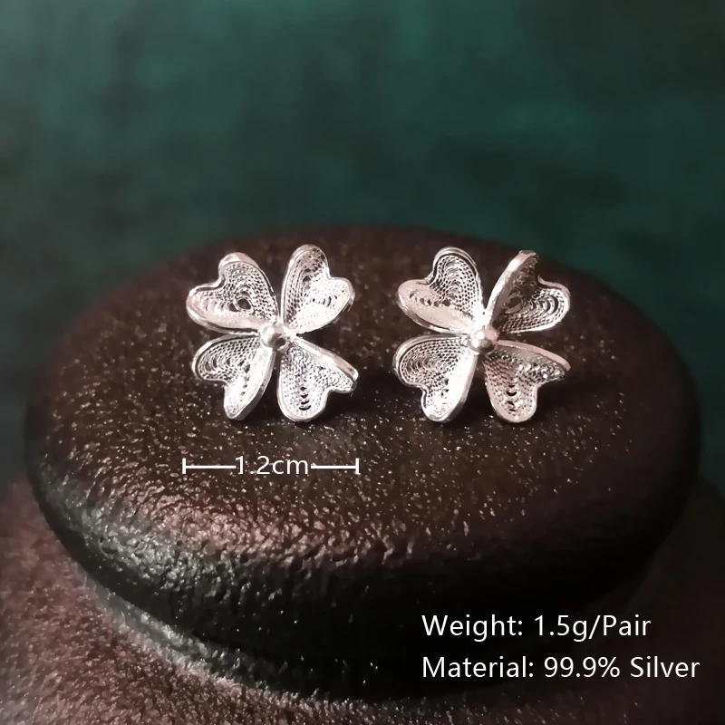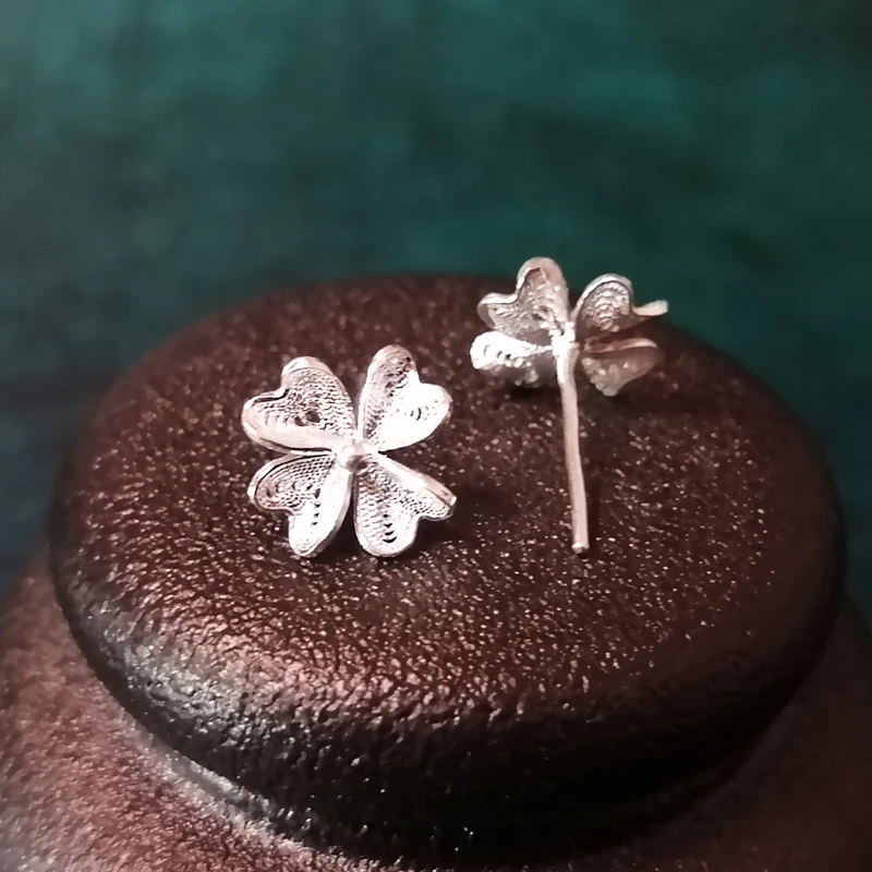 Четыре листа клевера 999 серебро серьги гвоздики цветок 2020 женские серьги Роскошные ювелирные изделия этнические серьги ручной работы корейский