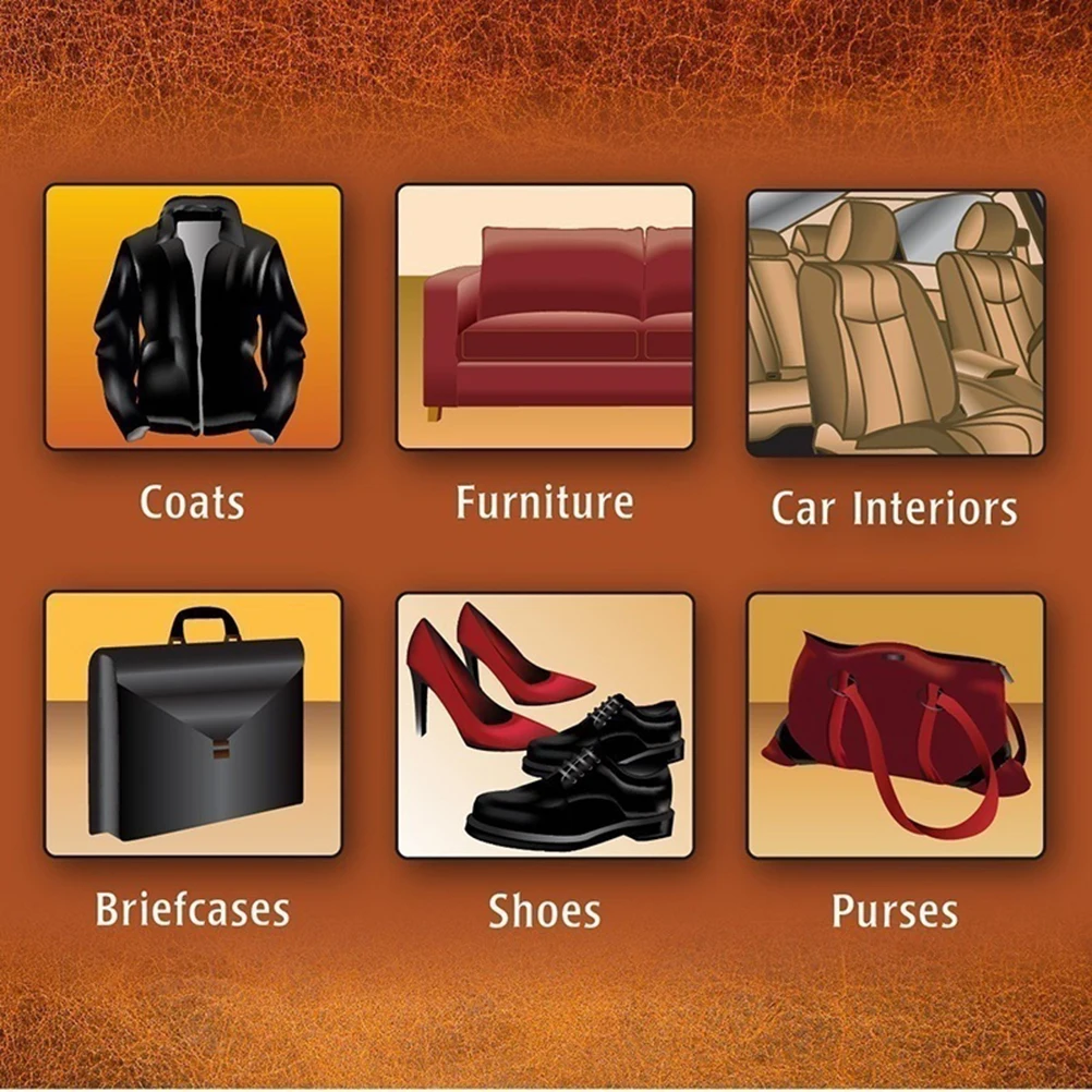Идеально подходит для всех изделий из кожи и ПВХ сапоги, обувь, перчатки, кошельки, Шапки, Ремни, авто обивка, мебель для офиса; Все гладкие предметы из натуральной кожи