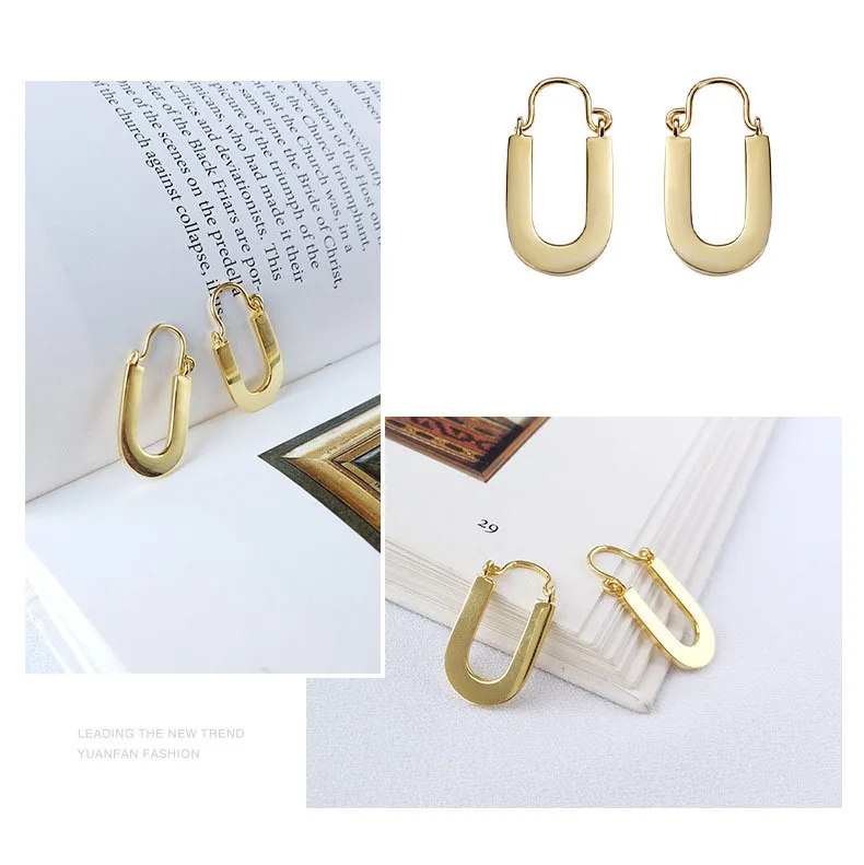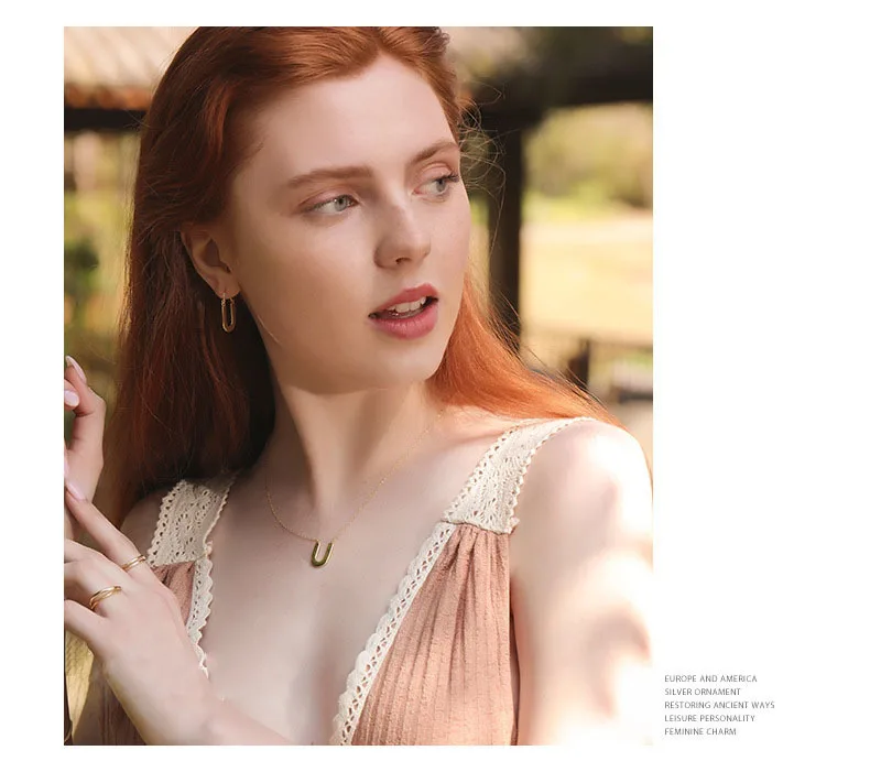 Тип формы рисунка:Серьги-кольца с надписью UДля женщин 925 пробы серебряные ювелирные изделия