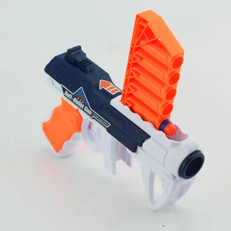 1. Название продукта: ручной мягкий пулемет 2. Материал: пластик 3. Размер: 22*14*4,5 см 4. Вес: 0,35 кг 5. Возраст: 7-14 лет 6. Мягкие пули EVA безопасны для детей. 7. Посылка включает в себя: игрушечный пистолет * 1, зажим * 1, мягкую пулю * 6 Обратите внимание, что цвет игрушечного пистолета отправляется случайным образом.