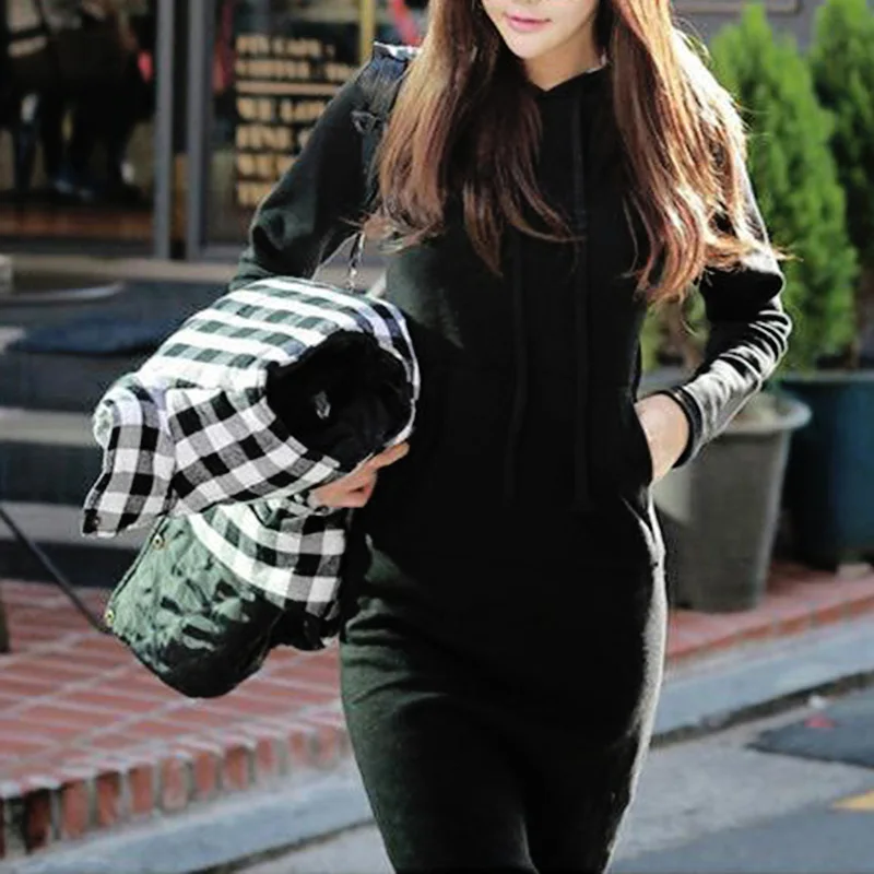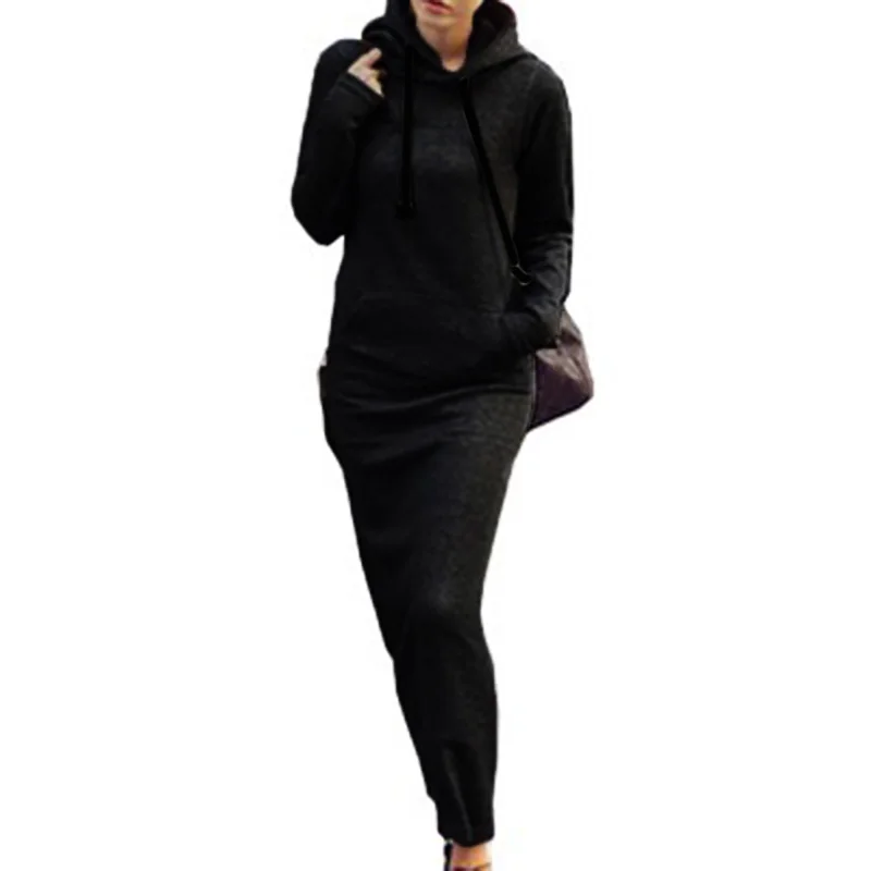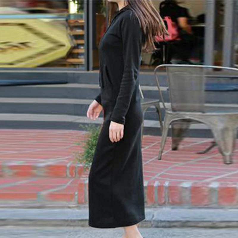 * Описание товара: женское платье с длинным рукавом на осень и зиму, Повседневный свитер, платье с капюшоном
