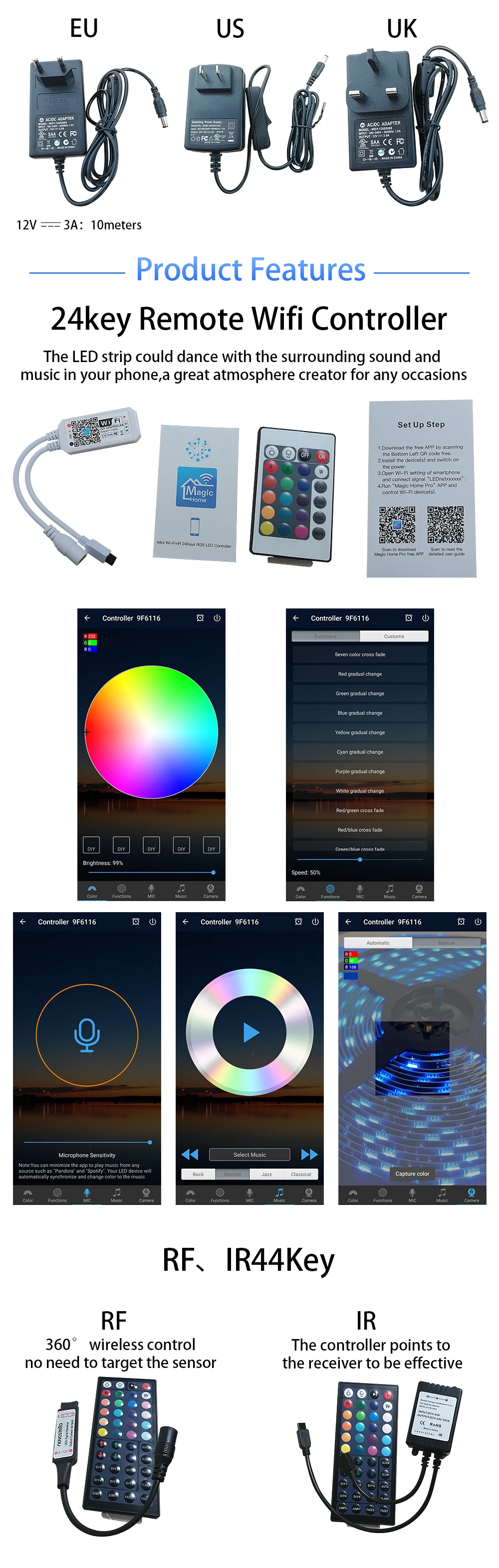 Светодиодные ленты светильник s Bluetooth App RGB Мечта Цвет адресуемых 1903 IC