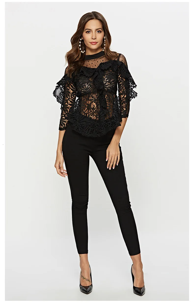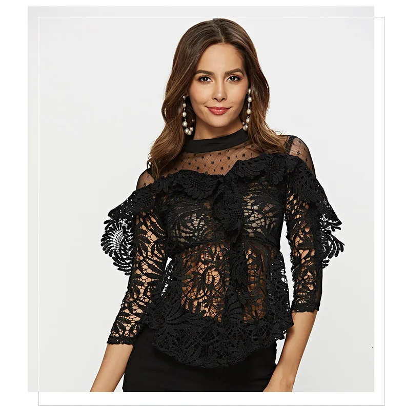 Женские блузки 2018 с V образным вырезом вязаная крючком одежда топы длинным