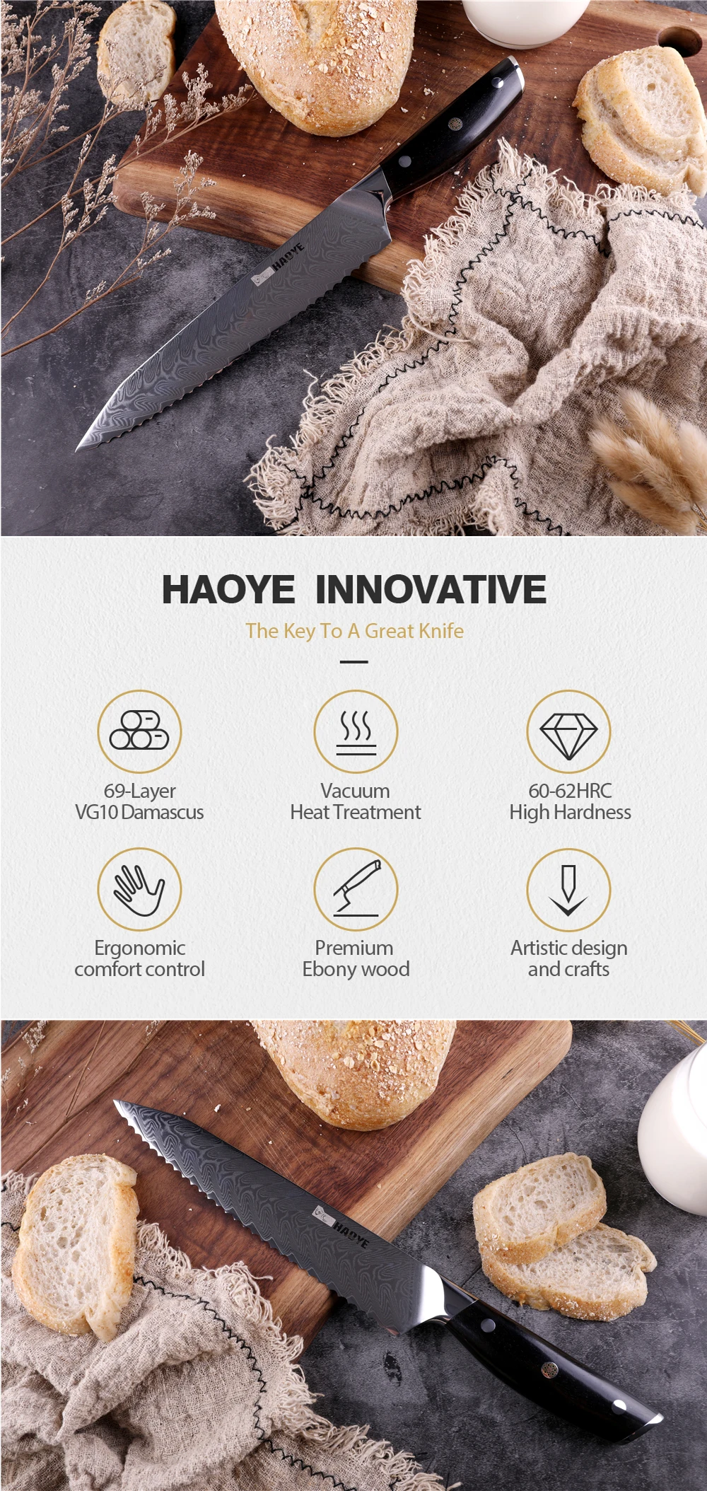 HAOYE Freedom серия 8 дюймов дамасский нож для хлеба