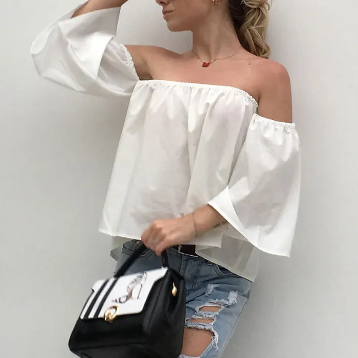 Женская Однотонная футболка с открытыми плечами Vetement Femme, однотонная белая футболка с вырезом лодочкой, Клубная одежда, 2019