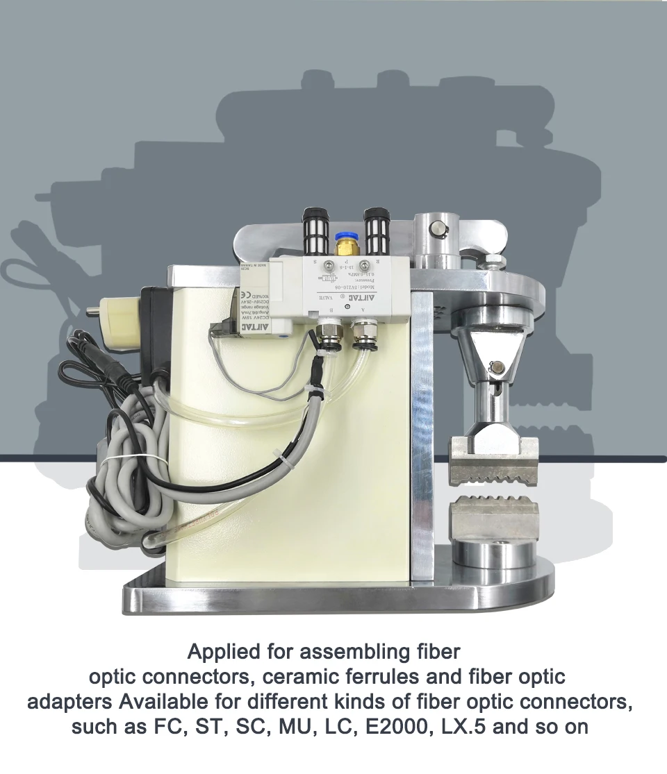 FCCM-3000A обжимной станок используется для сборки волоконно-оптических соединителей/керамических наконечников и волоконно-оптических адаптеров. Давление станка регулируется, и он доступен для различных видов волоконно-оптических разъемов (таких как FC, ST, SC, MU, LC, E2000, LX.5 и так далее). Простота в обращении, высокое качество и высокая эффективность.