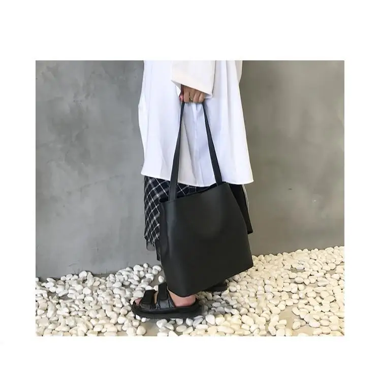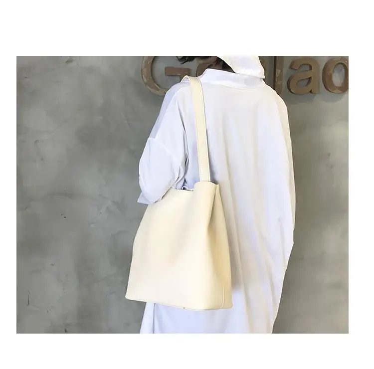 Большая женская сумка простая вместительная через плечо две части искусственная