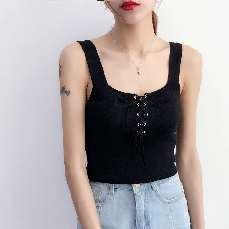Высококачественная Летняя женская Облегающая майка с v-образным вырезом, топы без рукавов для девочек, Однотонная футболка, топы для девочек