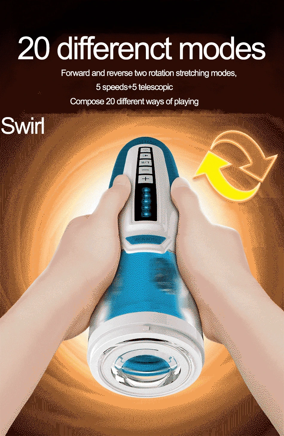 Примечание: поскольку разные партии продукции могут немного отличаться. Пожалуйста, будьте добры. Важно: Этот продукт не является водонепроницаемым, не используйте его в воде. Особенности: Вихревой поршень, 550 вращений/мин, иллюзия влагалища запутывание, виртуальная кожа feeliing, 6 сцен секса стоны; 200 раз/мин автоматический телескопический, полностью автоматический вверх и вниз безумие 1 минуту 200 раз поршень, 40 мм телескопическое расстояние; Полностью автоматический вращающийся диск для верховой езды и шлифования Положительный и отрицательный 2 вида поворотного режима, 5 видов скорости + 5 видов частот, формируя 20 видов режимов стимуляции; Иллюзия четырехмерного языка в четырехмерном канале влагалища. Восемь гранул в нижней части, множество слоев объемного и фрикционного пениса; Ярость вихрь, вращение, поршень, Глубокая глотка три в одном, шесть видов секса стоны