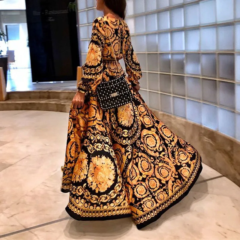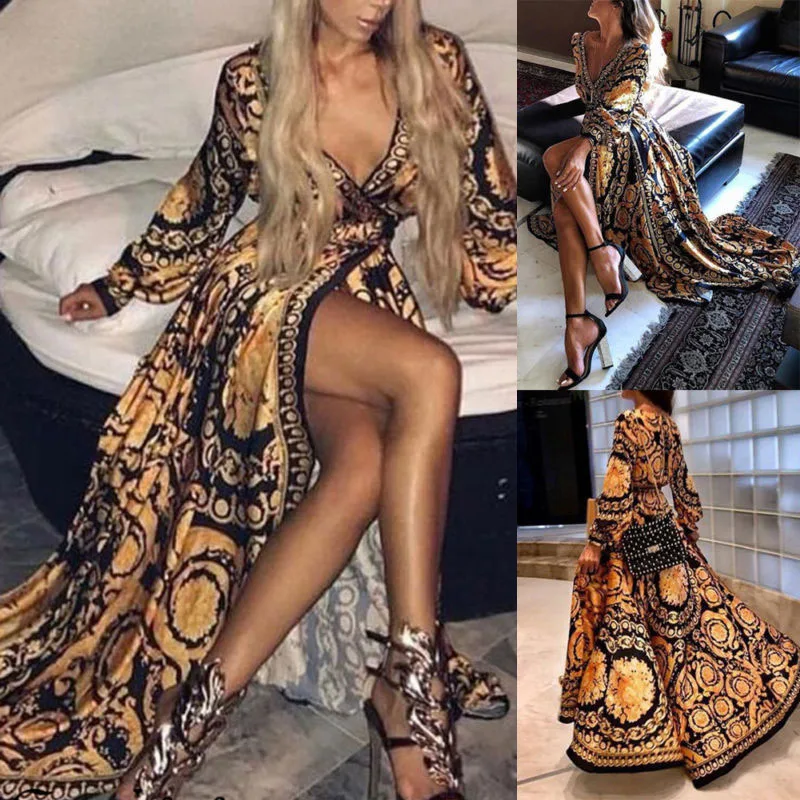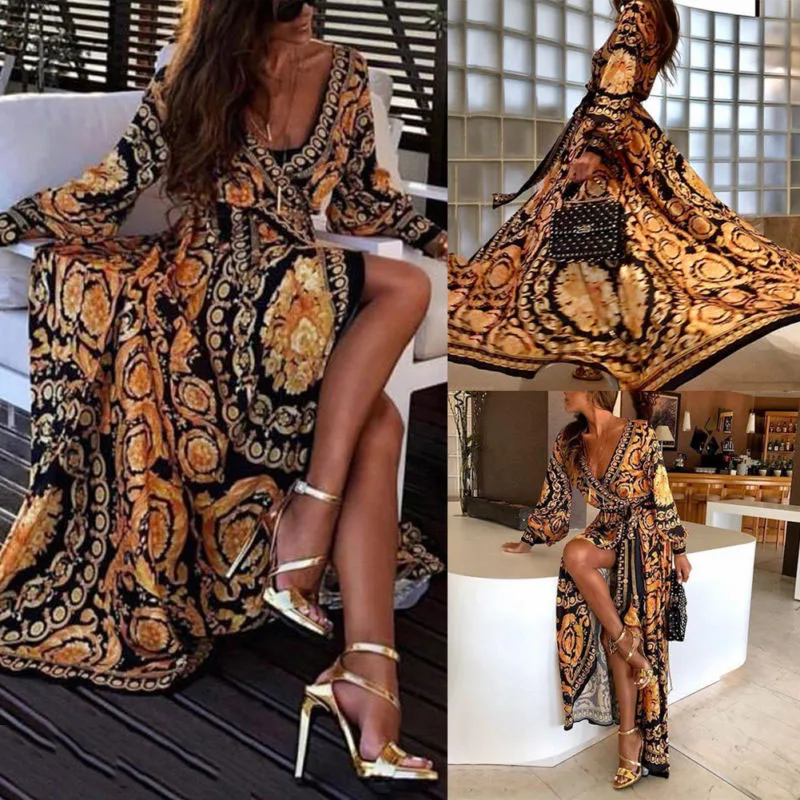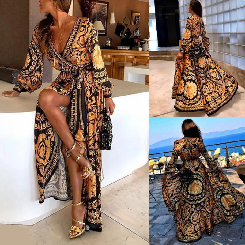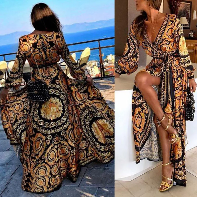 * Описание товара:Женское длинное платье в стиле бохо с v-образным вырезом, Пляжное Летнее Платье макси с цветочным принтом