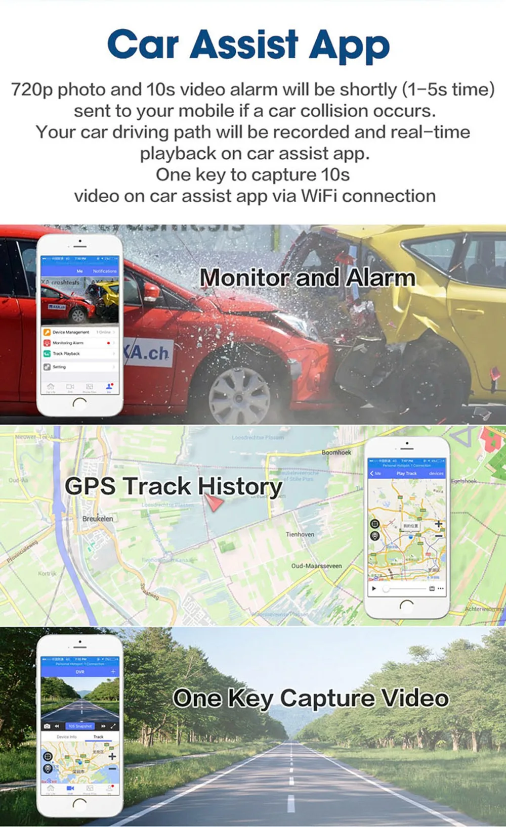 Стиил беспокоится о вашей милой машине после парковки? Благодаря assibitant автомобиля, независимо от того, где вы находитесь, просто откройте свой телефон, вы можете увидеть, что произошло вокруг вашего автомобиля.