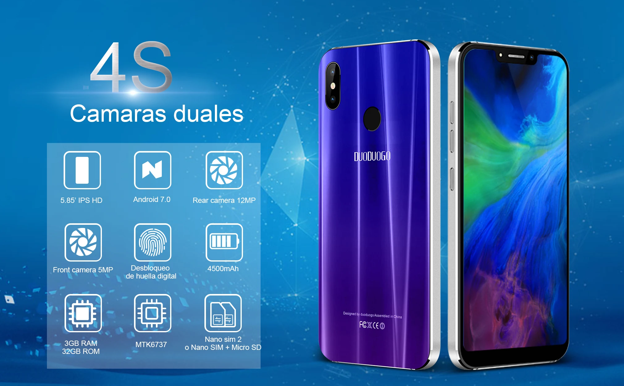 ОС: Android 7,0 Процессор: MTK6737 1,5 Гц Размер экрана: Капля воды экран 5,84 дюймов Дисплей: 1552x720 Память: 3 ГБ ОЗУ 32 Гб ПЗУ Фронтальная камера: 5.0MP задняя камера: 8.0MP Батарея: 4500 ма-ч Слот: 2 слота для sim-карты