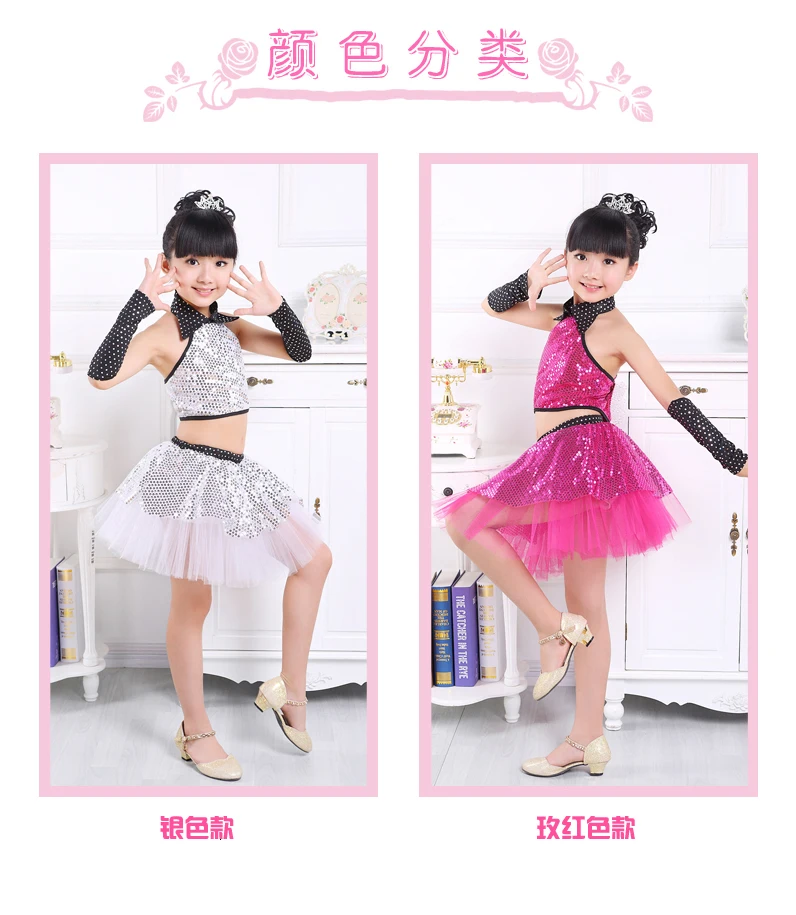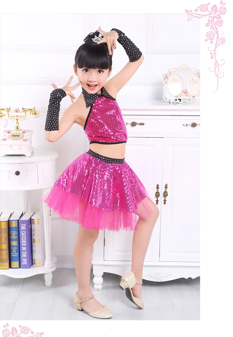 Детский танцевальный костюм с блестками для джаза, современный танцевальный костюм, модное танцевальное платье для латинского вальса, платья для сценического шоу, джазовые костюмы для девочек