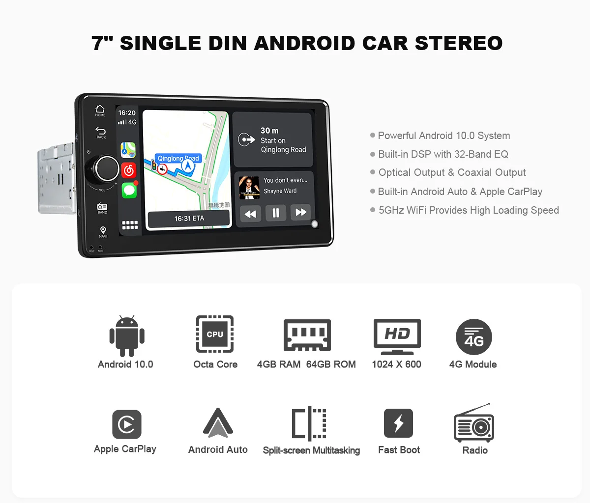 * Мощная система Android 10,0. * CPU:UIS7862 Восьмиядерный 1.8GHz@4.0GB (память) + 64 ГБ (память). * Встроенный Android Auto & Apply Wireless Carplay. * Встроенный слот для sim-карты. * Оптический выход и коаксиальный выход. * Встроенный DSP с 32-полосным эквалайзером. * 5 ГГц WIFI обеспечивает высокую скорость загрузки. * Радиочип TDA7786, чип усилителя: TDA 7851.