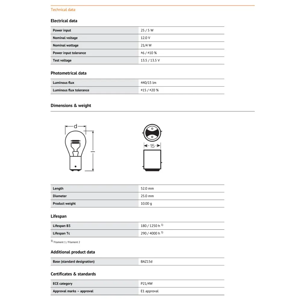 Лампочки 7225 P21/4W sidelight от OSRAM имеют оригинальное качество оборудования, полностью дорожные, И построены по тем же высоким стандартам качества, которые требуются ведущими мировыми производителями автомобилей.