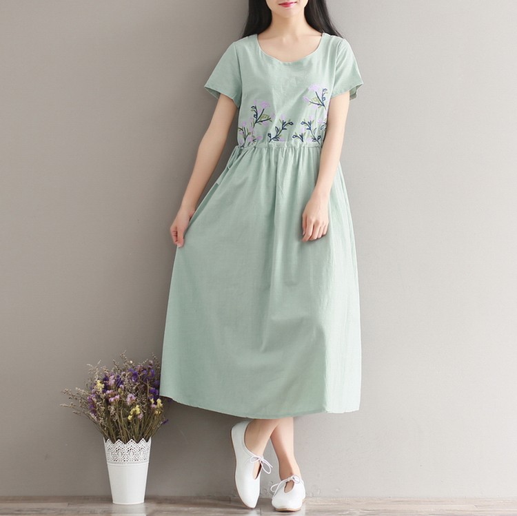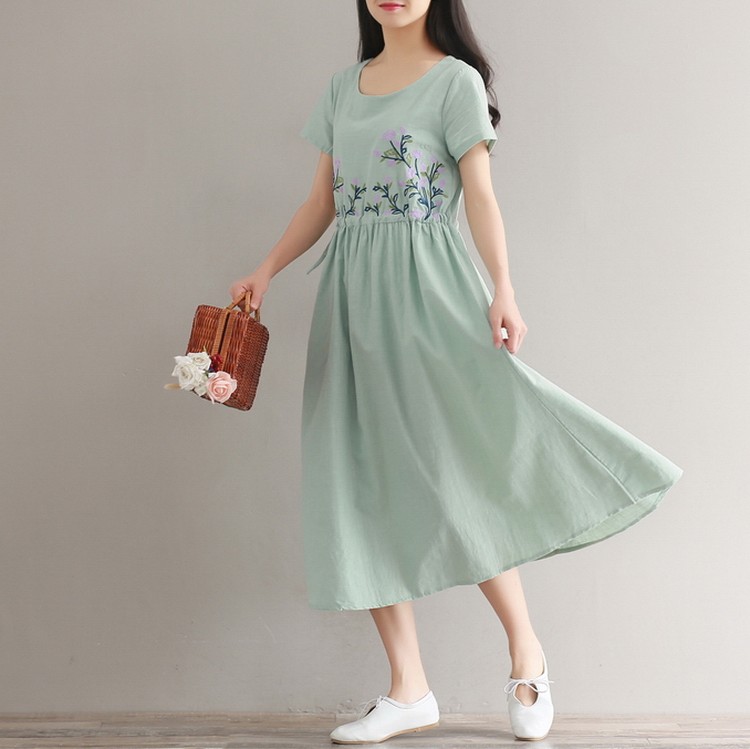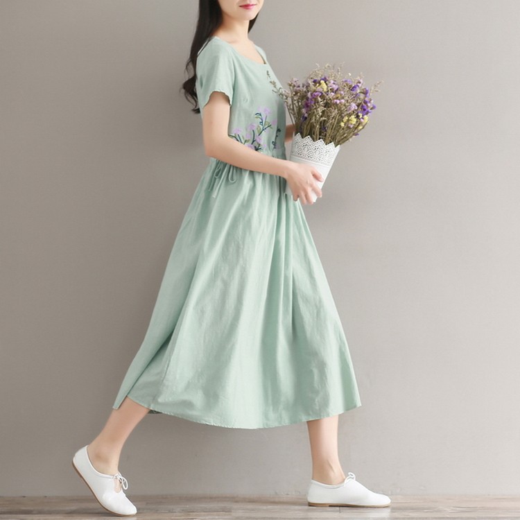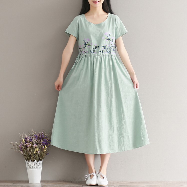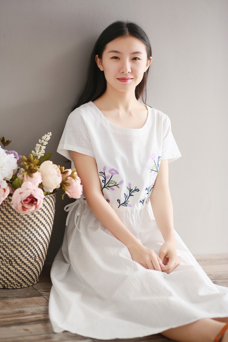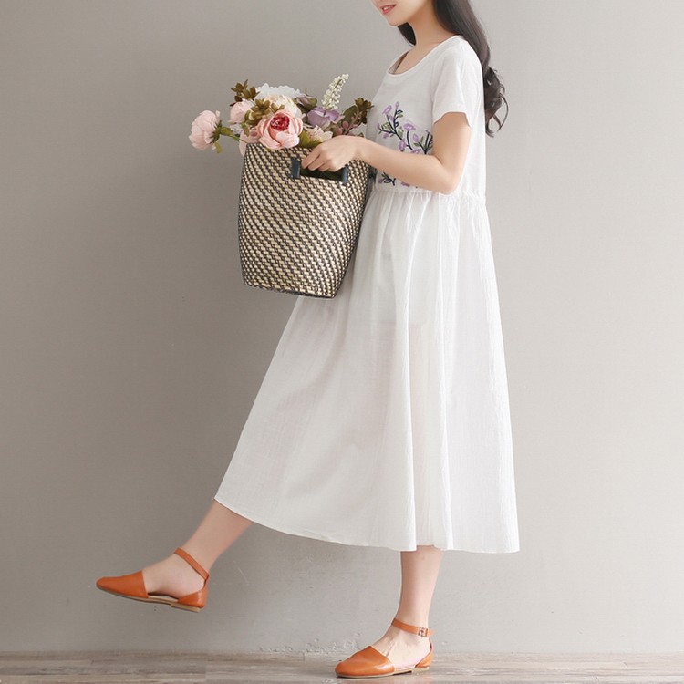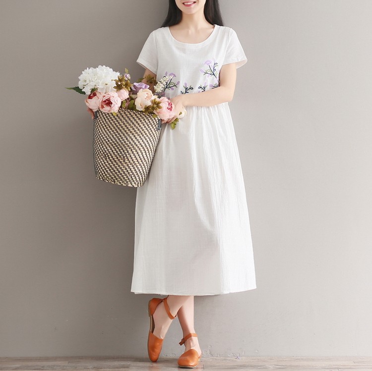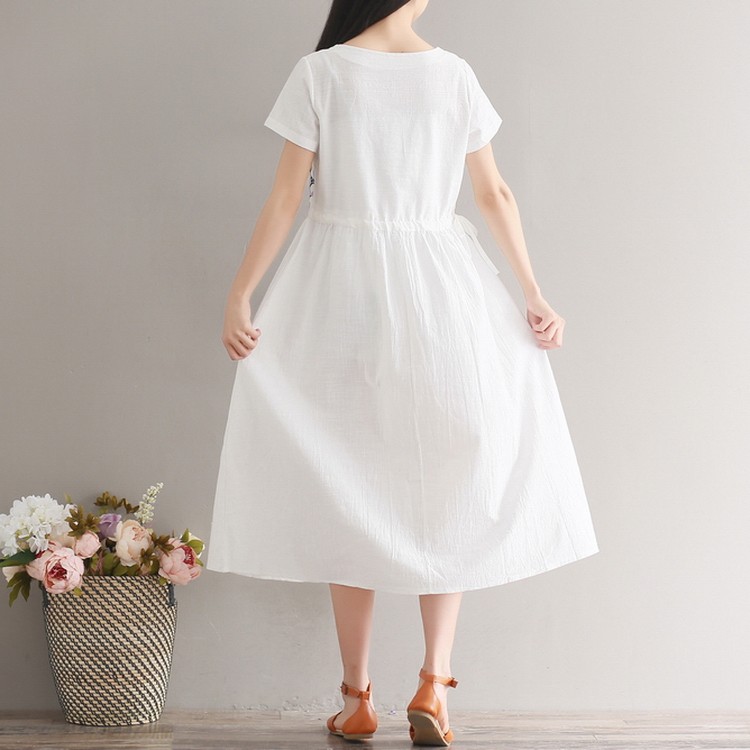 Женское пляжное платье из хлопка и льна, белое Повседневное платье с цветочной вышивкой, QV803, лето 2019