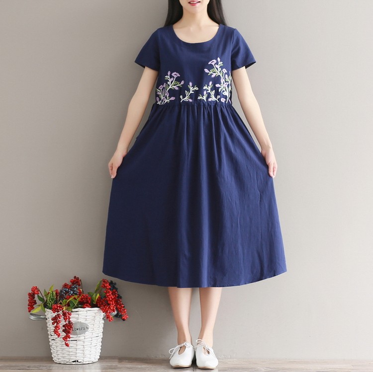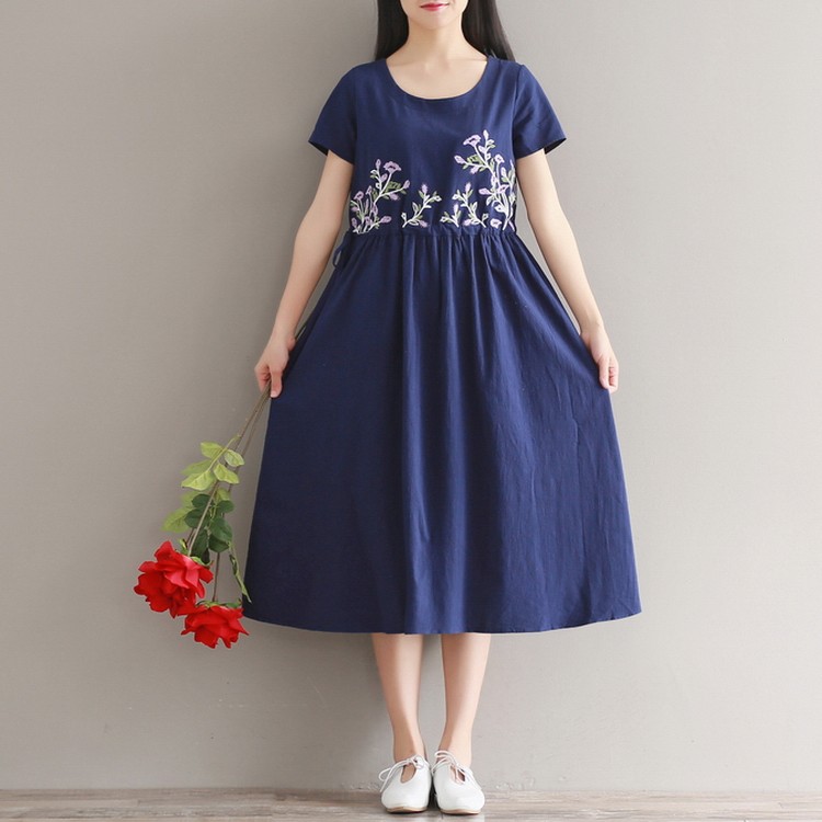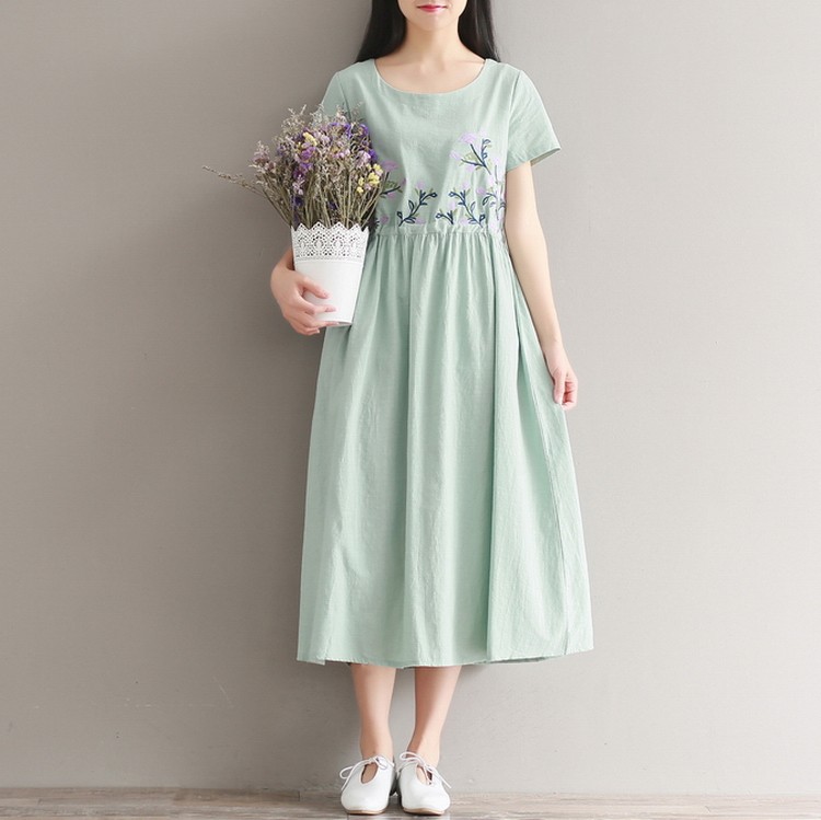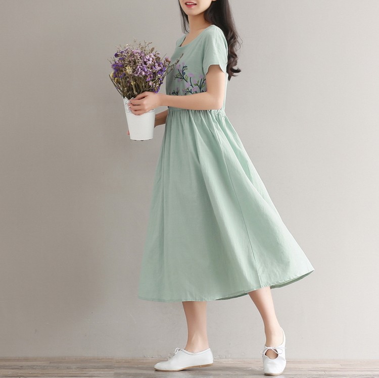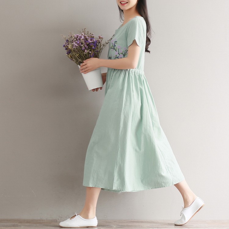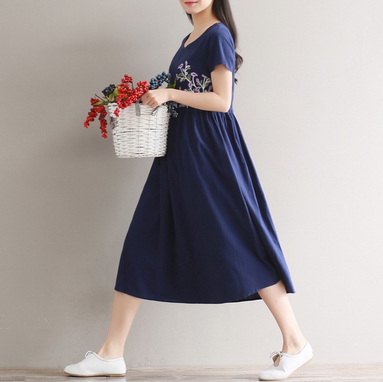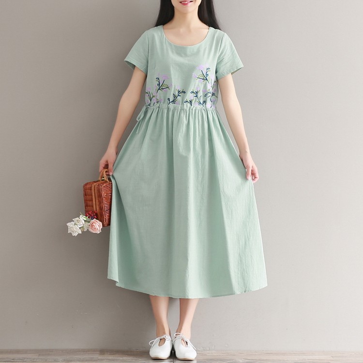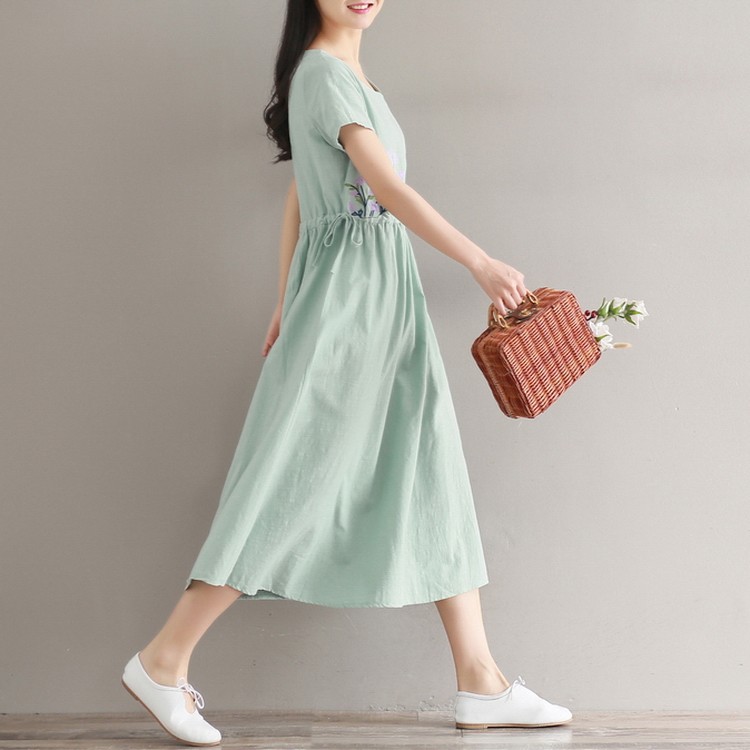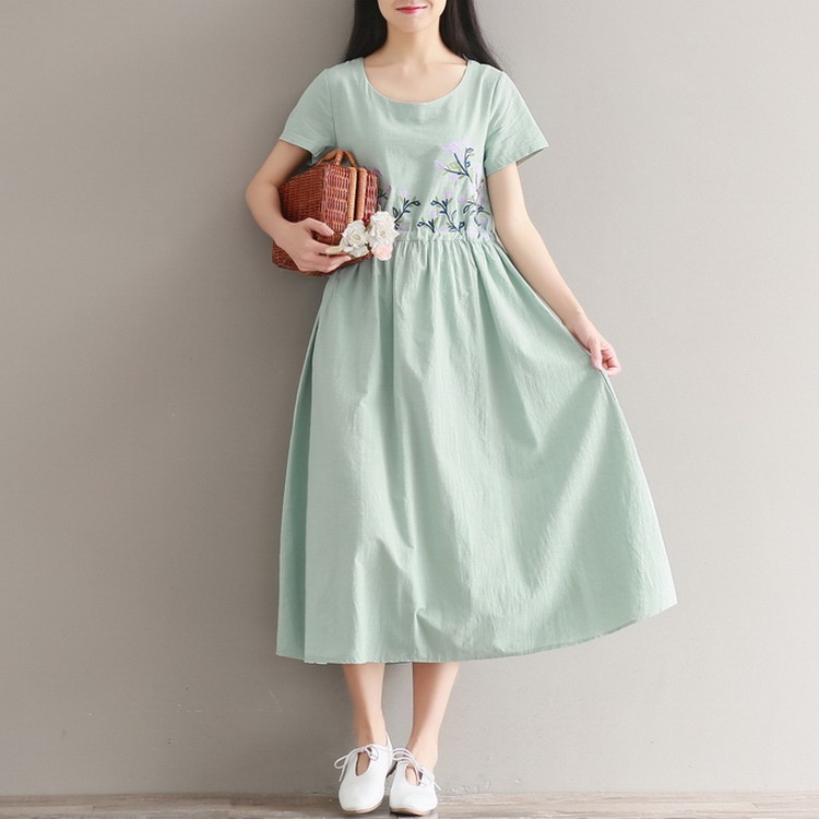 Женское пляжное платье из хлопка и льна, белое Повседневное платье с цветочной вышивкой, QV803, лето 2019