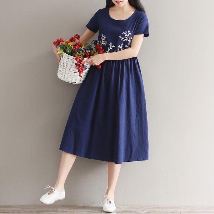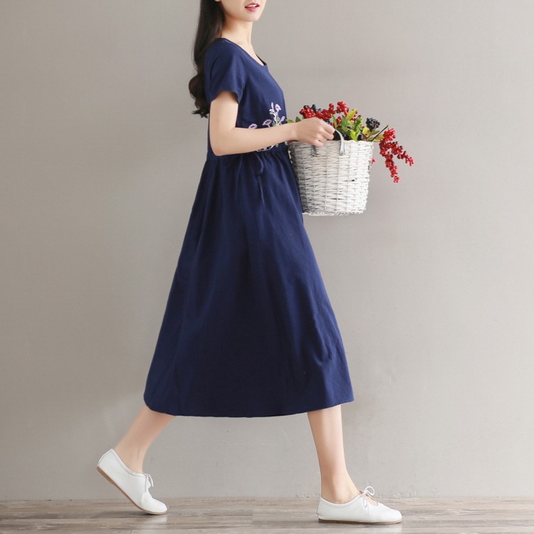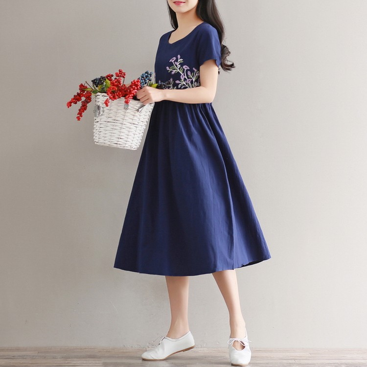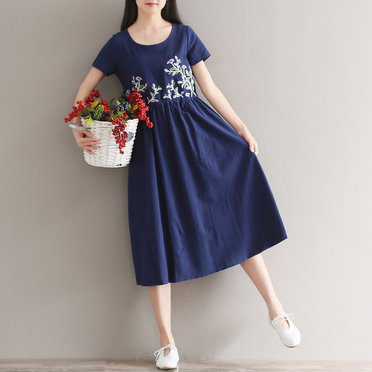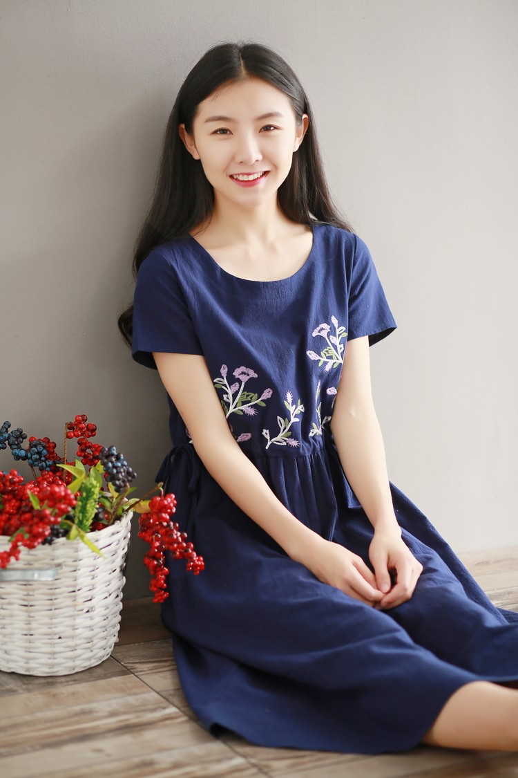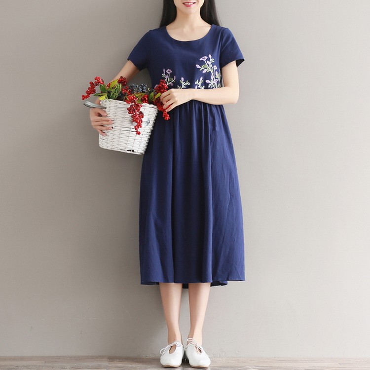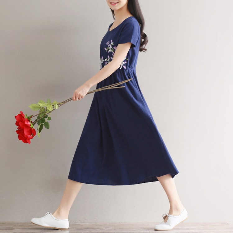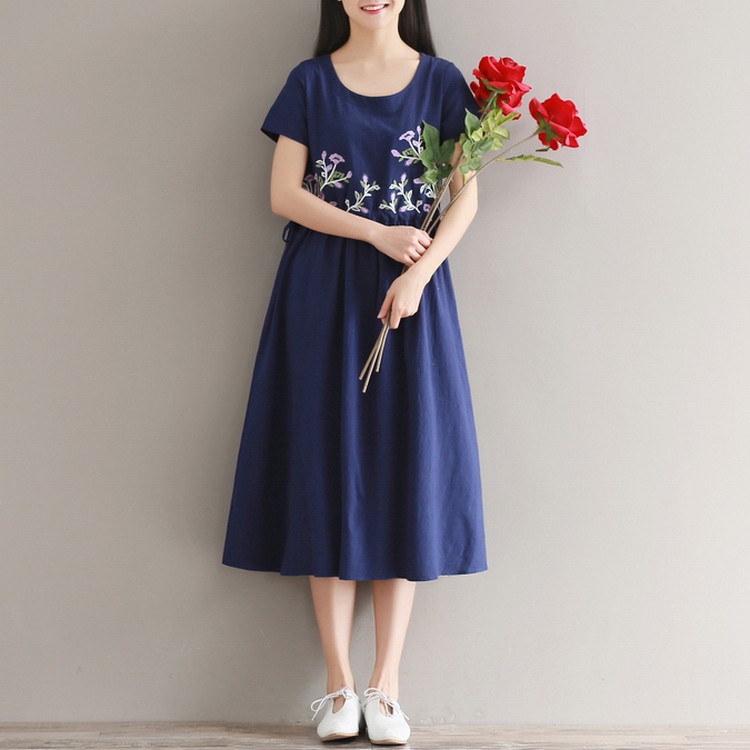 Женское пляжное платье из хлопка и льна, белое Повседневное платье с цветочной вышивкой, QV803, лето 2019