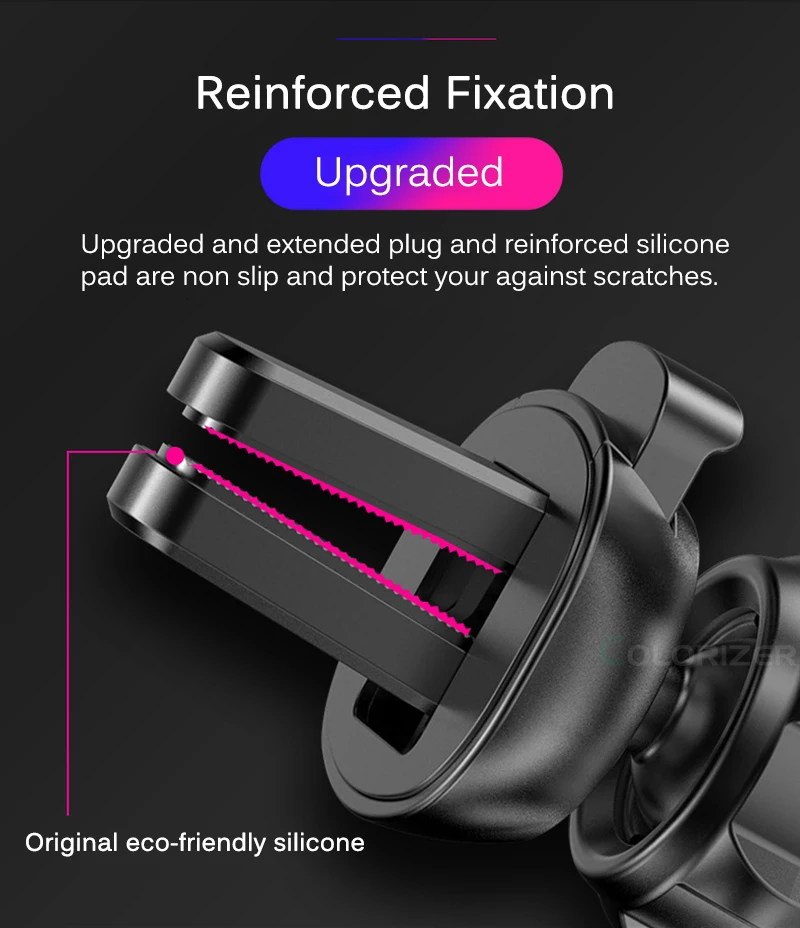 Треугольная конструкция надежно удерживает телефон на месте даже на тормозной зоне, неровной дороге, аварийном торможении и в других ситуациях.