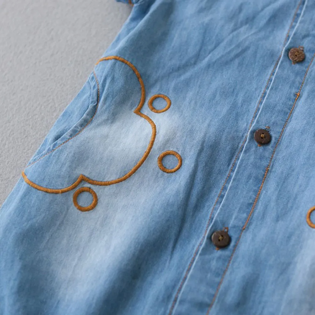 Детский джинсовый комбинезон в полоску с короткими рукавами для малышей
