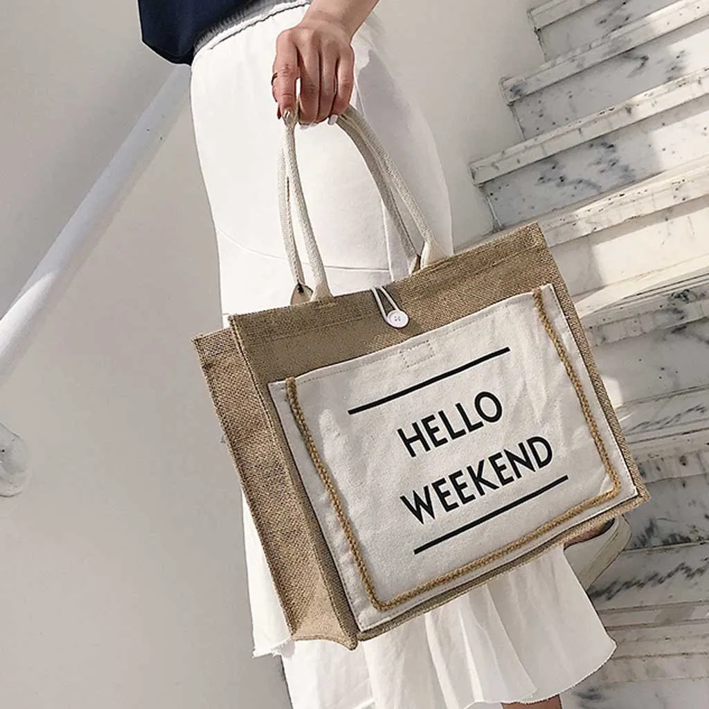 Женская льняная сумка, Большая вместительная Повседневная сумка через плечо, Повседневная сумка, сумка для покупок
